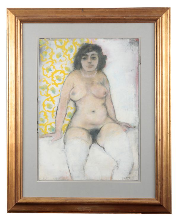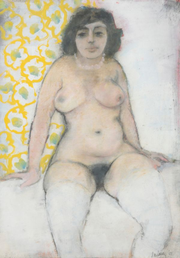 (19)88, portrait of a seated female nude, signed and dated lower right, oil on paper, 61.5cm x 43cm