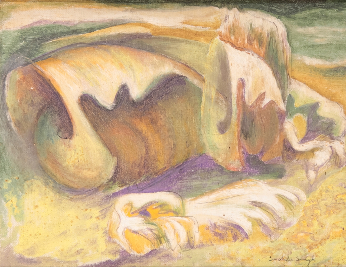 In her early career, Singh’s work often showed surrealist influences - particularly in subject matter, form and composition - but over time she moved toward abstraction, exploring colour, light and form with increased freedom. Her later paintings are frequently characterised by a luminous palette, expressive handling of paint, and an atmosphere that hovers between representation and imagination.