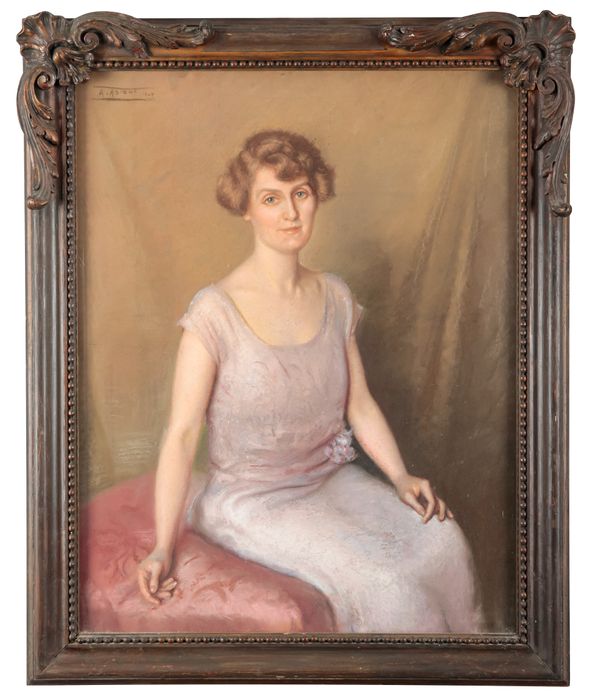 1927, depicted three-quarter-length seated in an interior, signed and dated upper right, pastel, 80cm x 62cm
