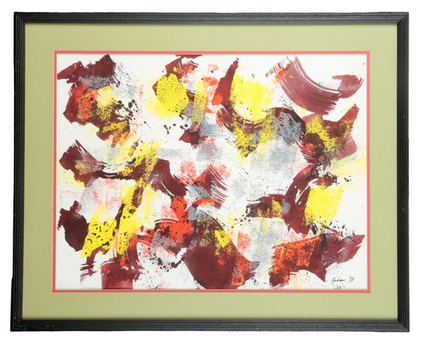 (19)58, signed and dated lower right, mixed media on paper, 49.5cm x 66cm