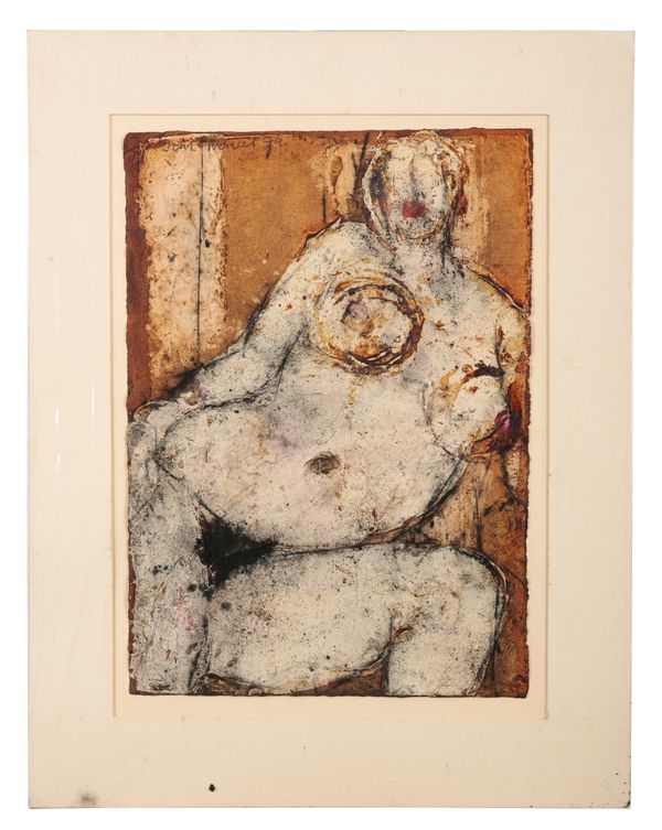 This artwork is in good condition, however due to the medium of oil and charcoal on paper created in an impasto manner, this has unfortunately cracked and flaked in some parts on the lower left but does not affect the image as a whole as of the nature of the style.This artwork is unframed and has minor fraying on sides of the paper. Looseness of charcoal has rubbed off in protective cover.