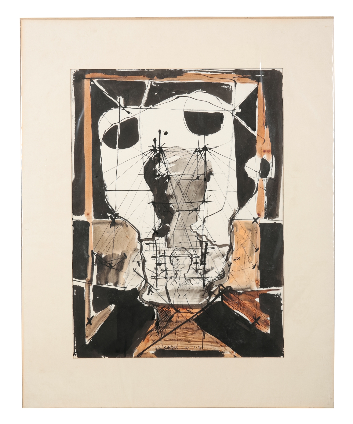 (19)75, signed and dated lower centre, ink and watercolour, 46.5cm x 34cm
