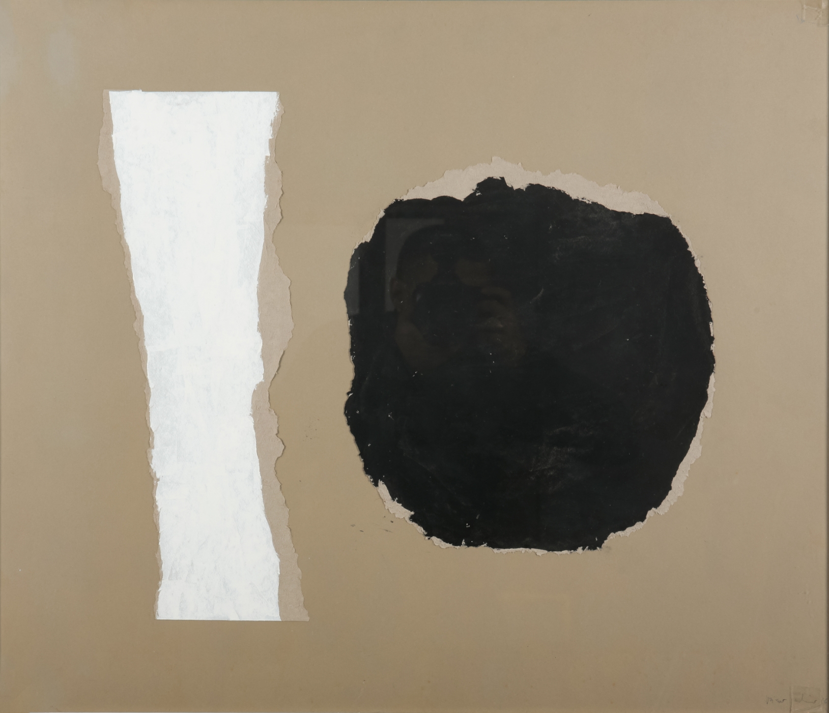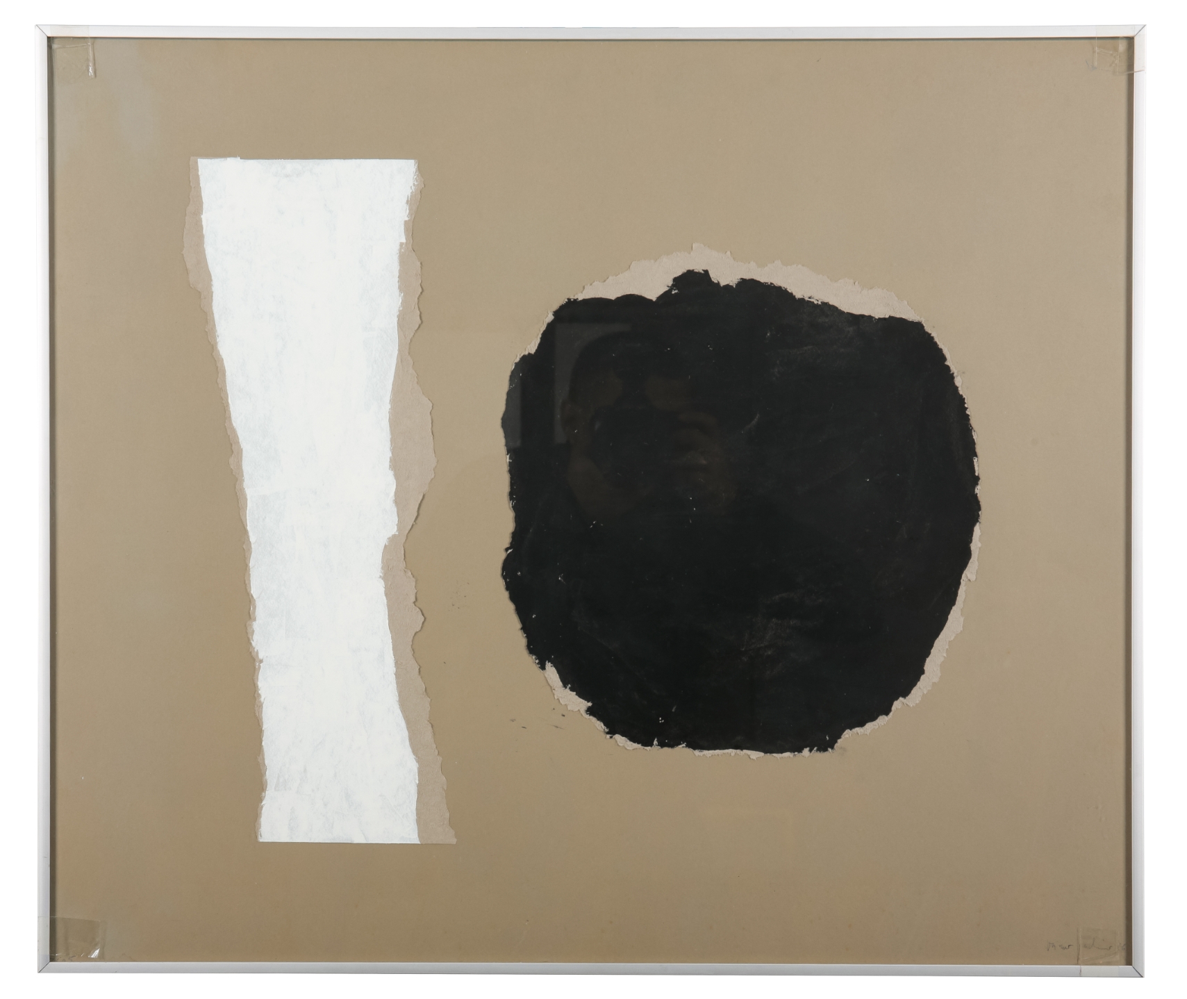 (19)76, signed and dated lower right, gouache and collage, 59cm x 69cm