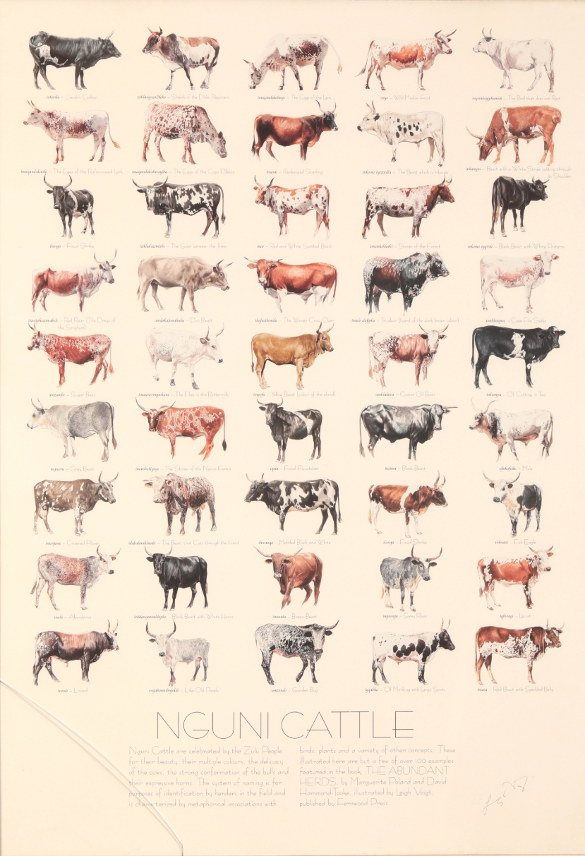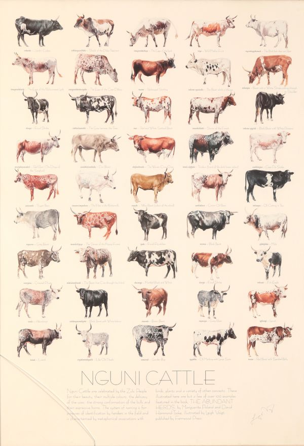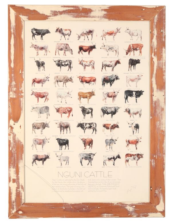 circa 1970s, screenprint, published for London Transport, 35cm x 40cm; together with a poster advertising American corn; and a lithograph illustrating variants of Nguni Cattle (3)
