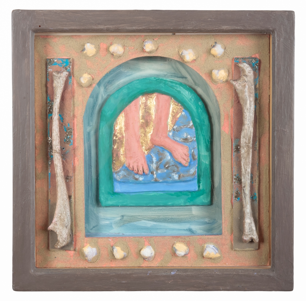 gouache and mixed media including found objects, 30cm x 30cm