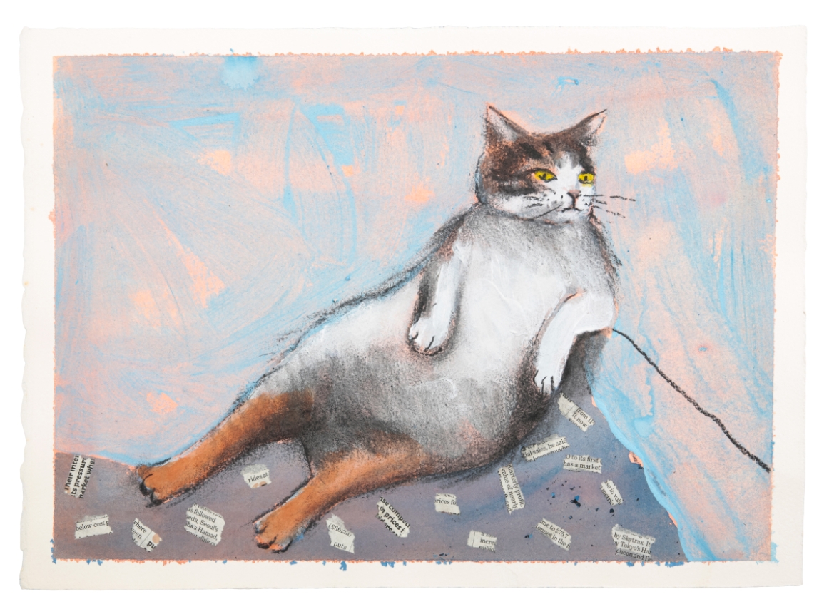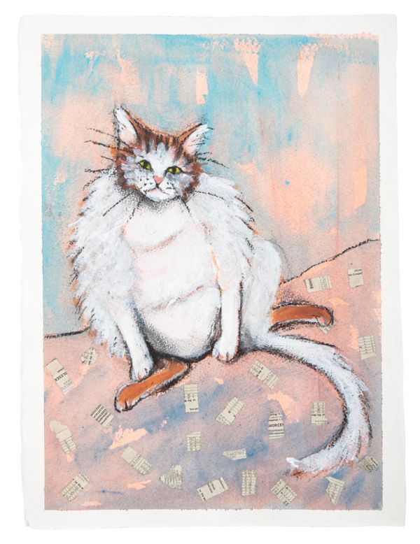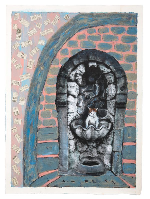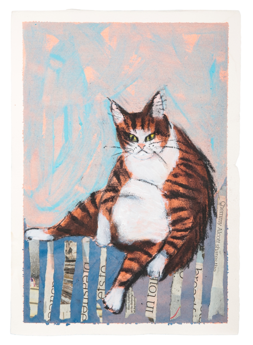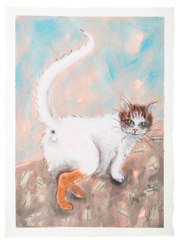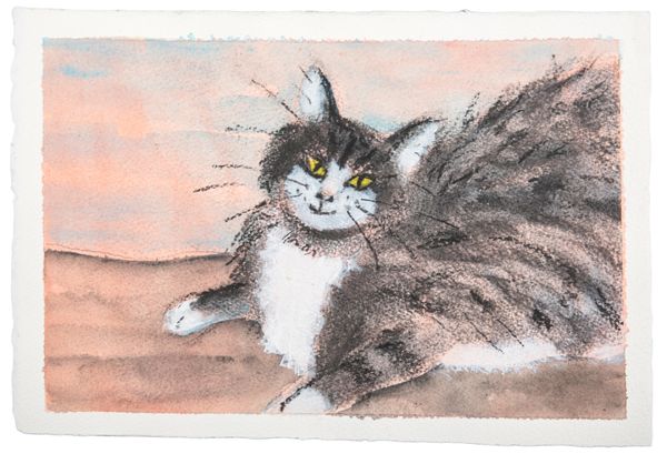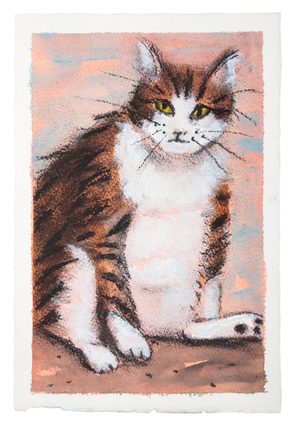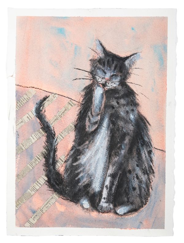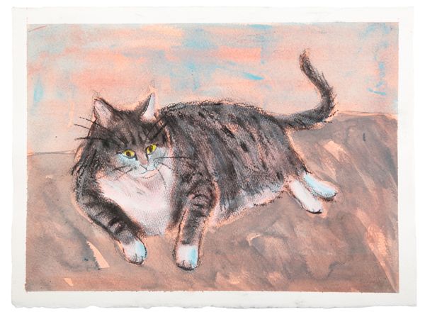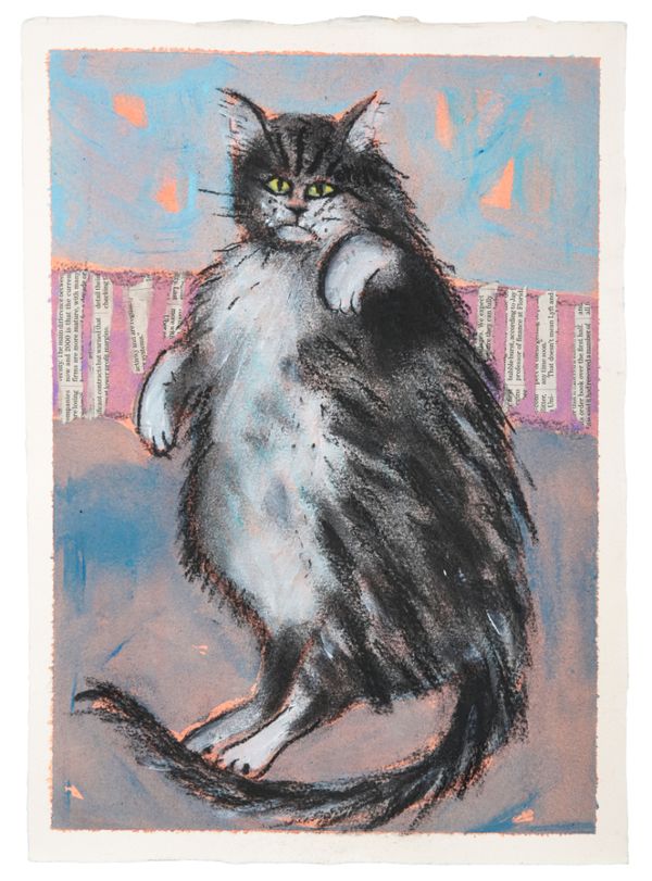 a collection of 12 studies of cats, gouache, typically 34cm x 25cm, with a manuscript for an accompanying collection of poetry written by the artist (1 folio)