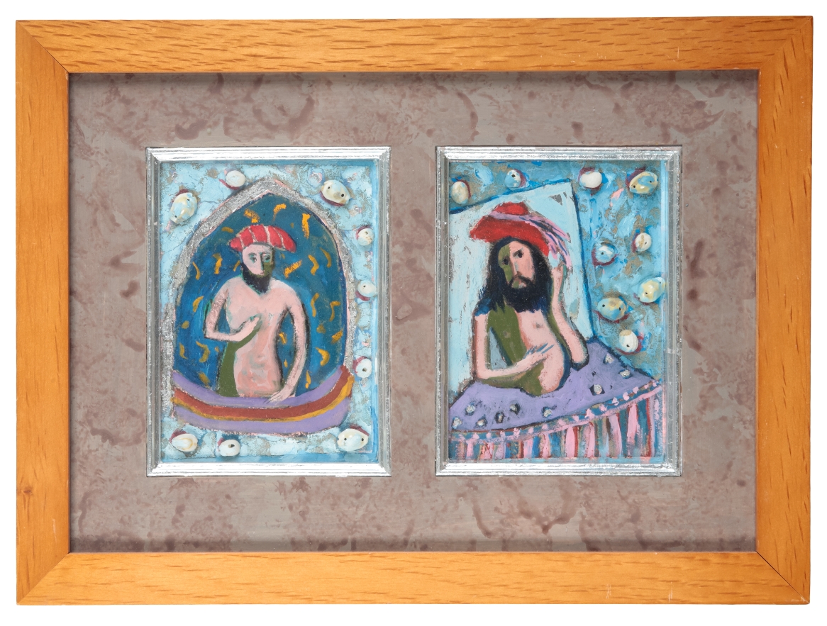 Both pictures present well, with minimal visible damage. The glazing to both cases might benefit from being cleaned. Any other visible flaws to the materials are almost certainly integral to the original compositional process. Please see additional images available on request.
