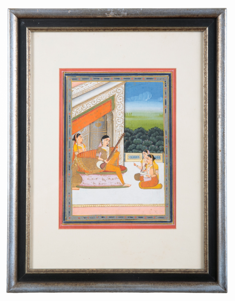 gouache, 25cm x 16.5cm; together with a second Indian scene depicting musicians, 25.5cm x 18cm (2)