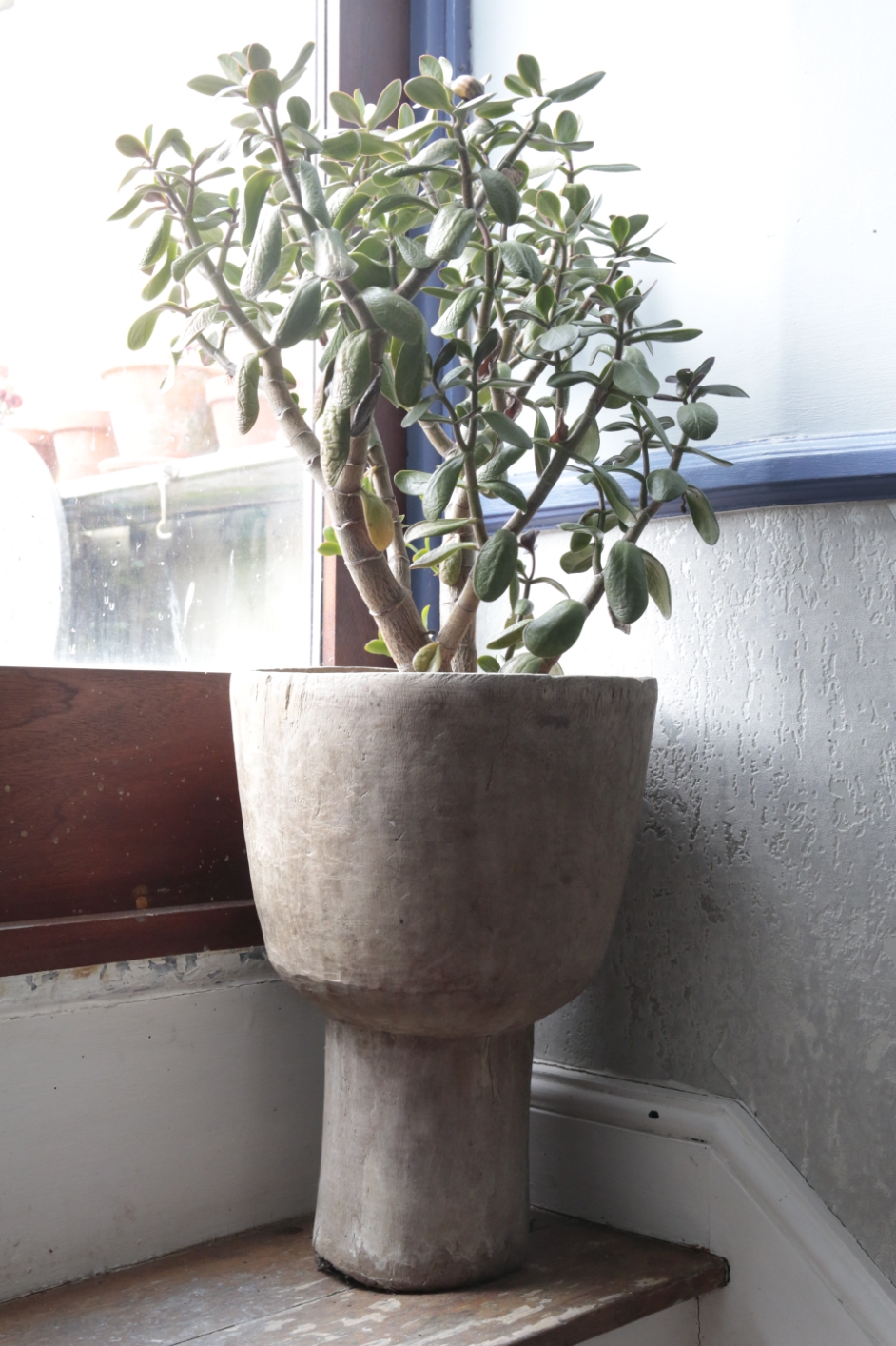 42cm high x 30cm diameter, containing a potted succulent