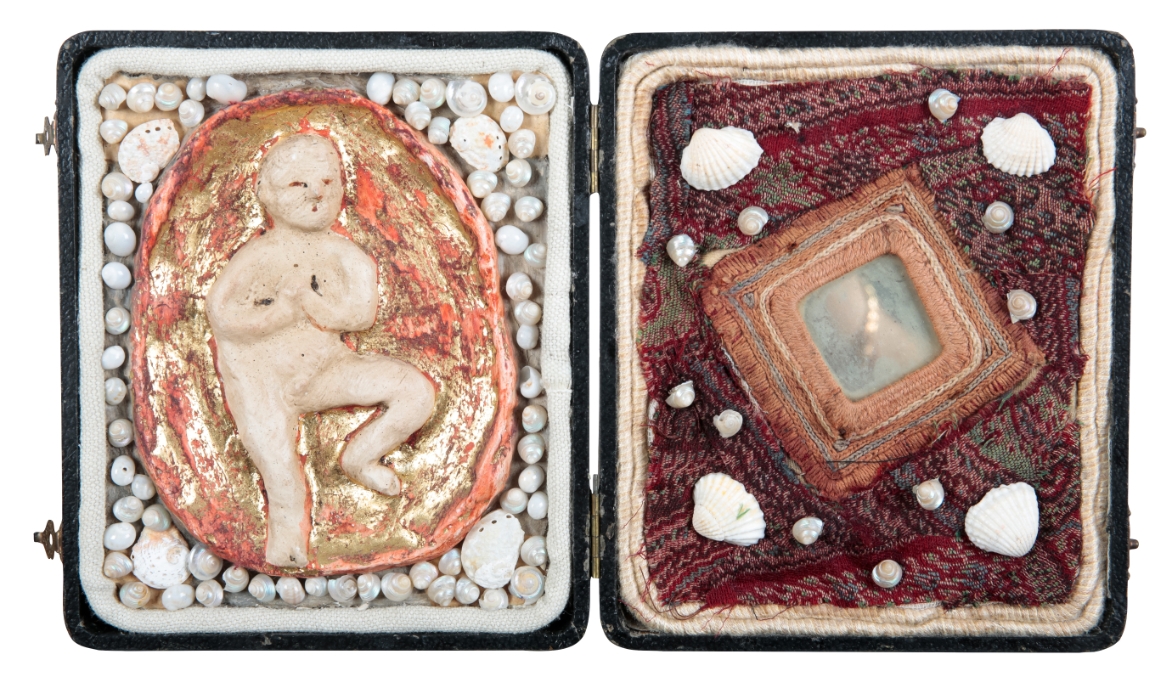 mixed media, 17cm x 13cm; together with a second mixed media artwork by the same hand (2)