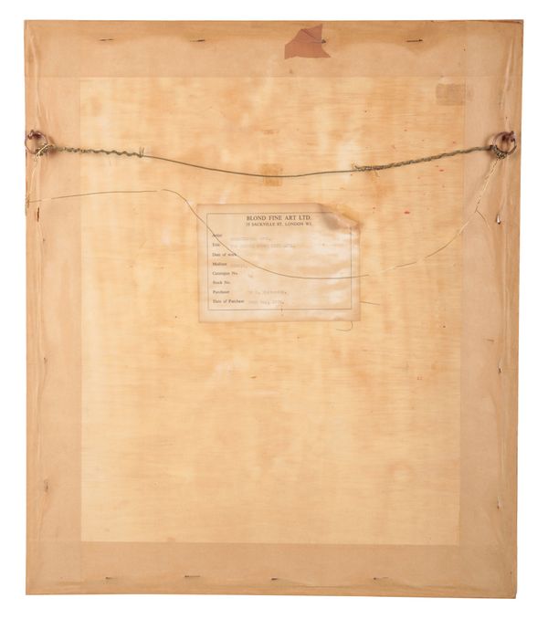 The drawing generally presents well. There is some light time staining and cockling to the sheet, as well as some light dirt trapped below the glazing. There is also a very small crease to the lower left quadrant. Please see additional images available on request.