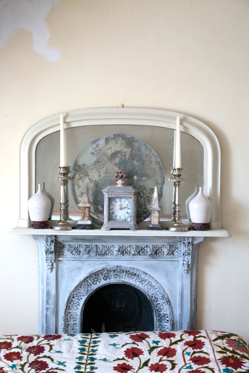 A 19TH CENTURY CREAM-PAINTED ARCH TOP OVERMANTEL MIRROR