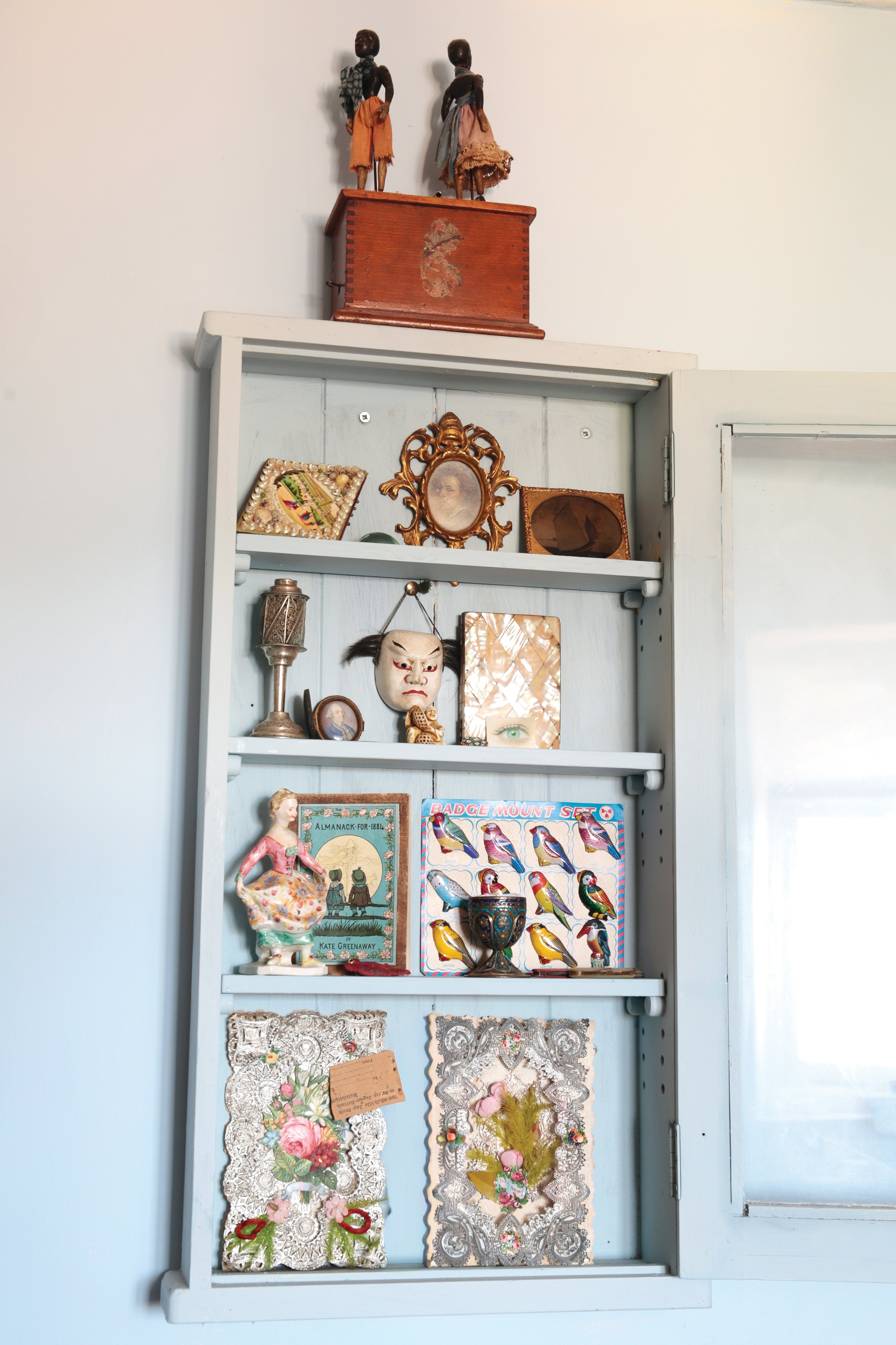 A MODERN PALE BLUE WALL CABINET OF CURIOSITIES