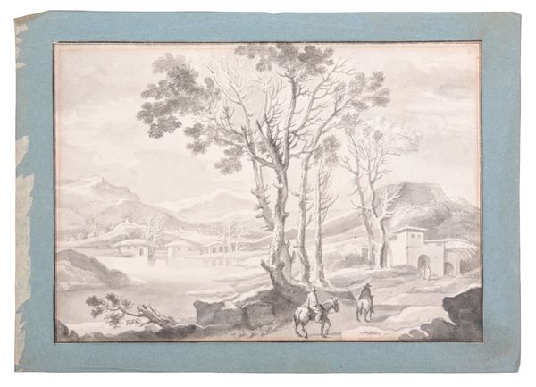 ink and grey washes on paper, 34cm x 46cm; together with three similar landscapes possibly by the same hand (4)