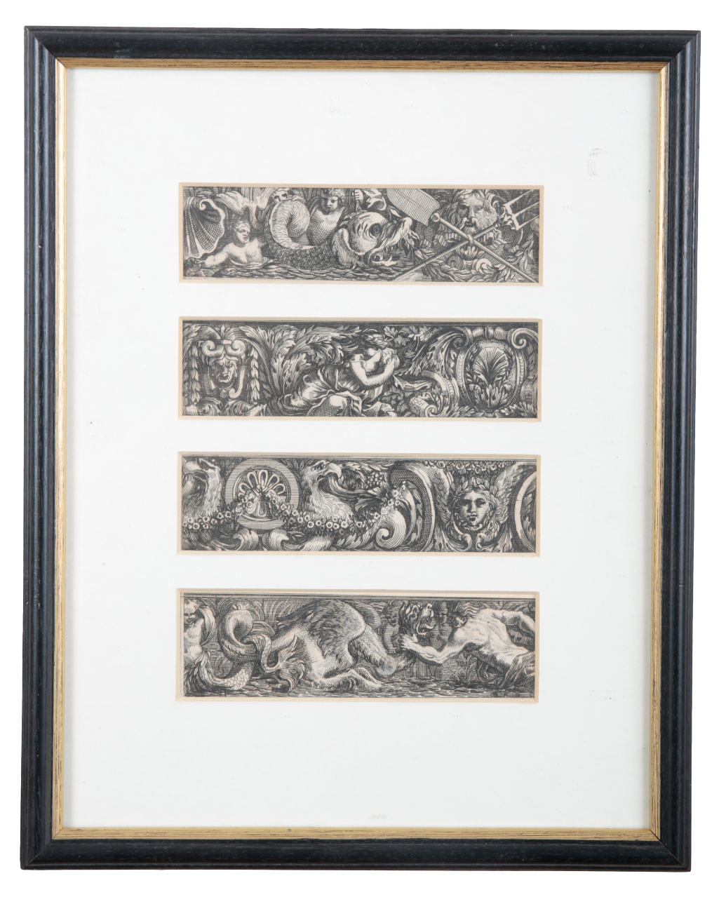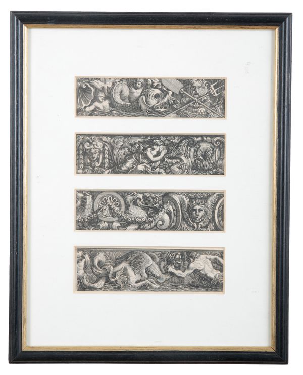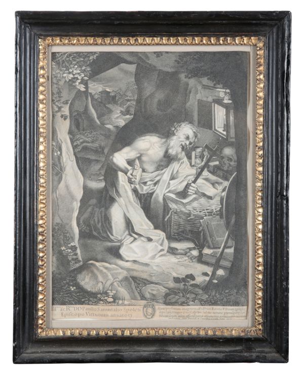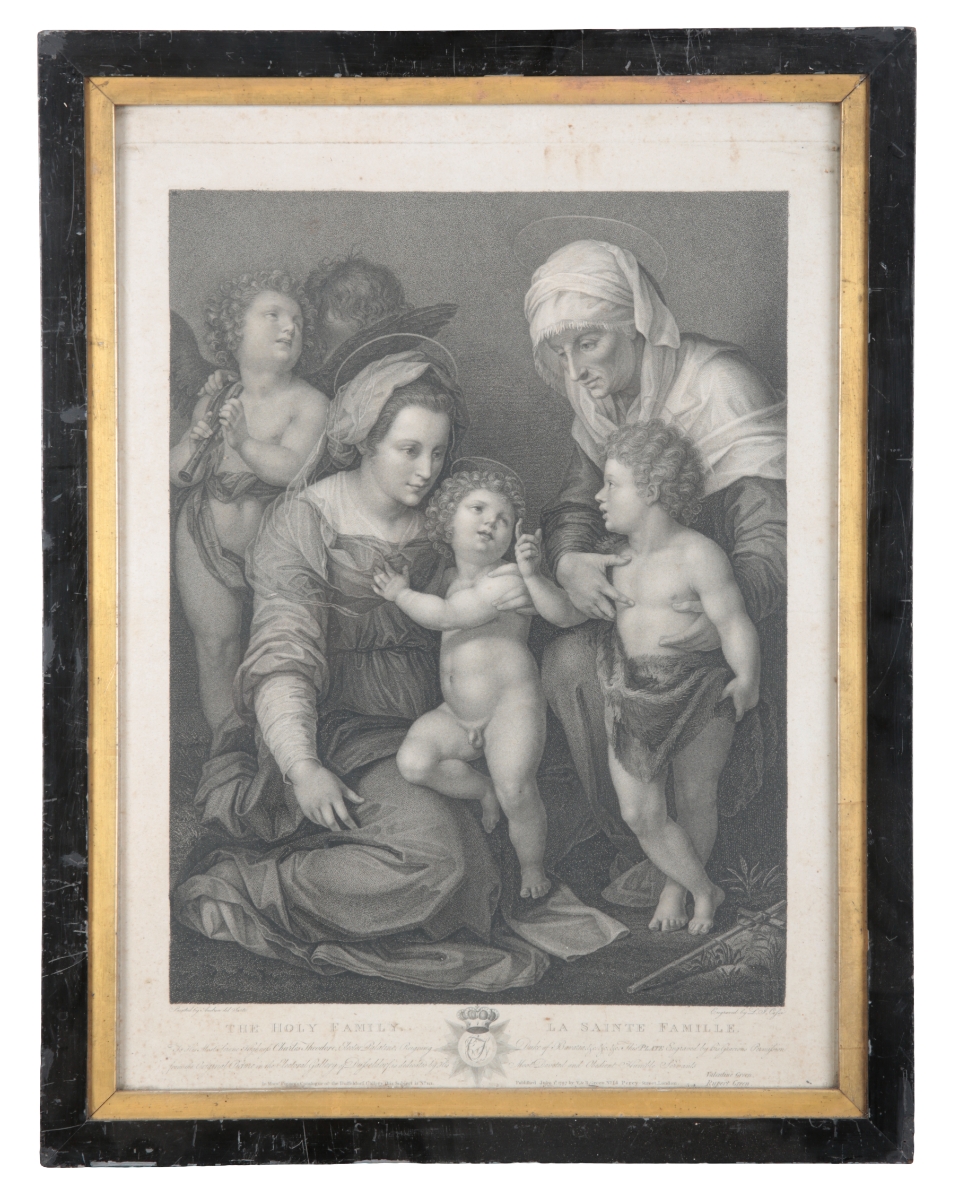 engraving in colours, 49cm x 30cm; together with an engraving after Andrea Del Sarto (1486-1530/31); an illuminated manuscript; and other similar examples (8)