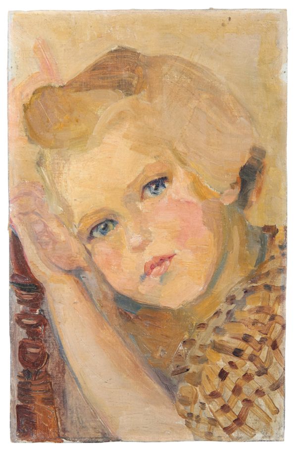 signed lower left, oil on canvas, 27.5cm x 35.5cm; together with a portrait of a girl attributed to the same hand, 34.5cm x 22cm (2)