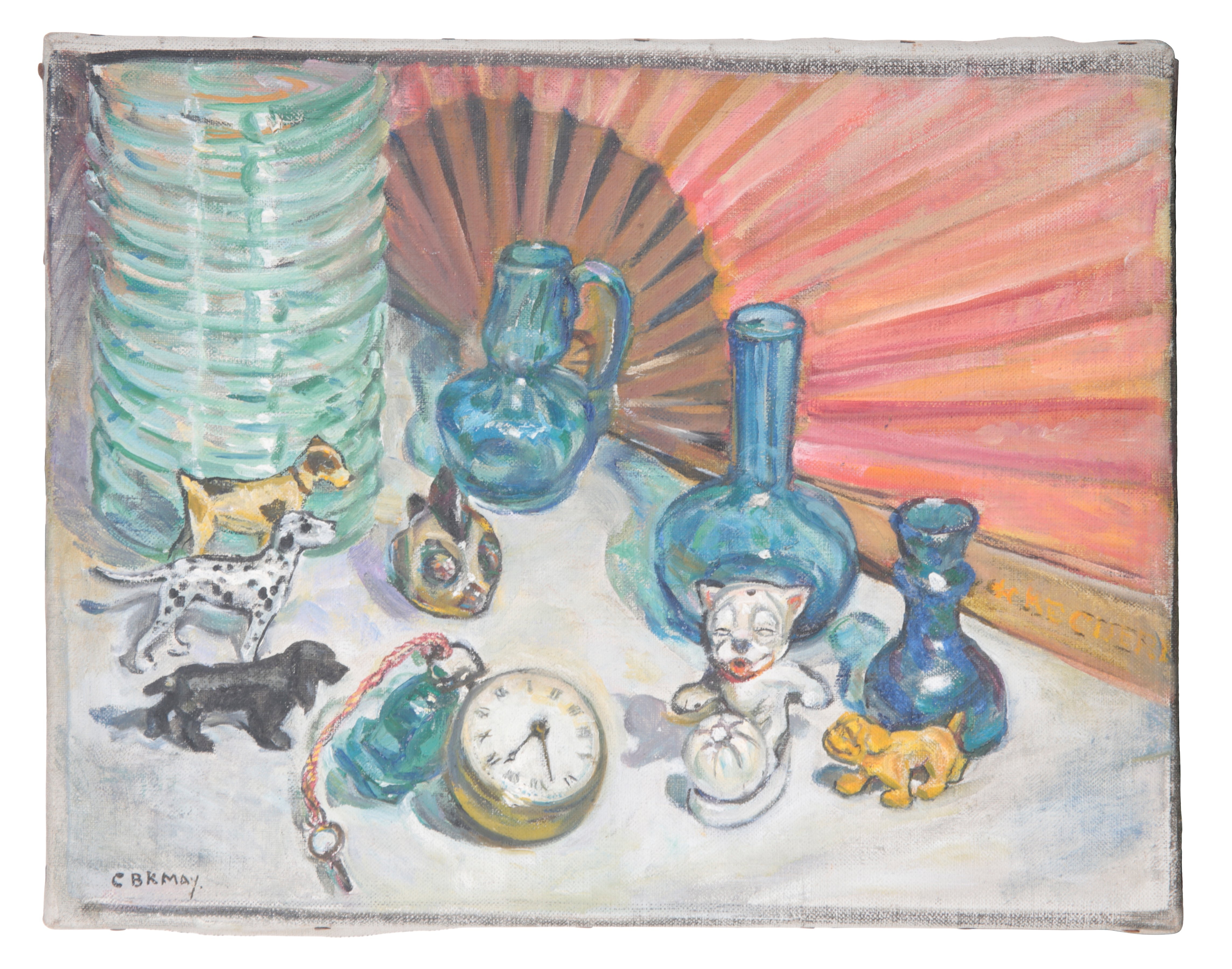 CHRISTIANE BRIX KLITGAARD-MAY (1876-1954) Still life with bottles, toy animals and pocket watch