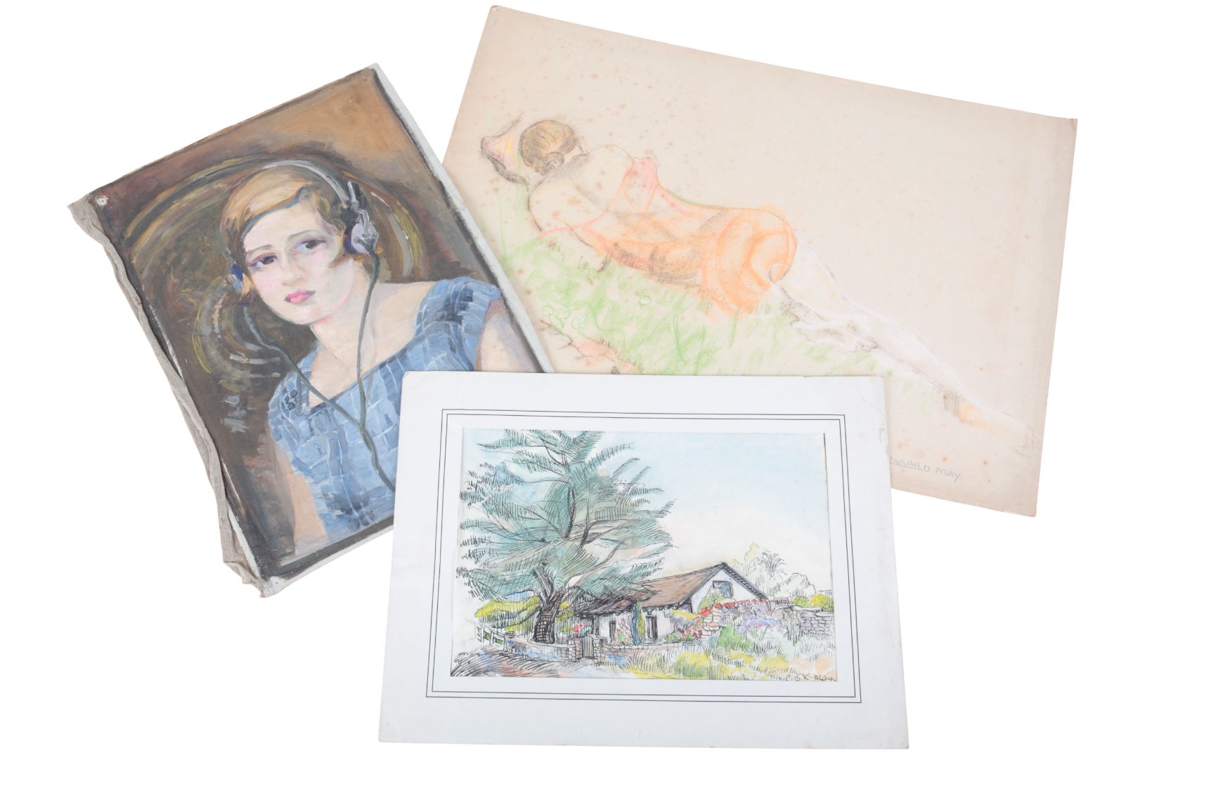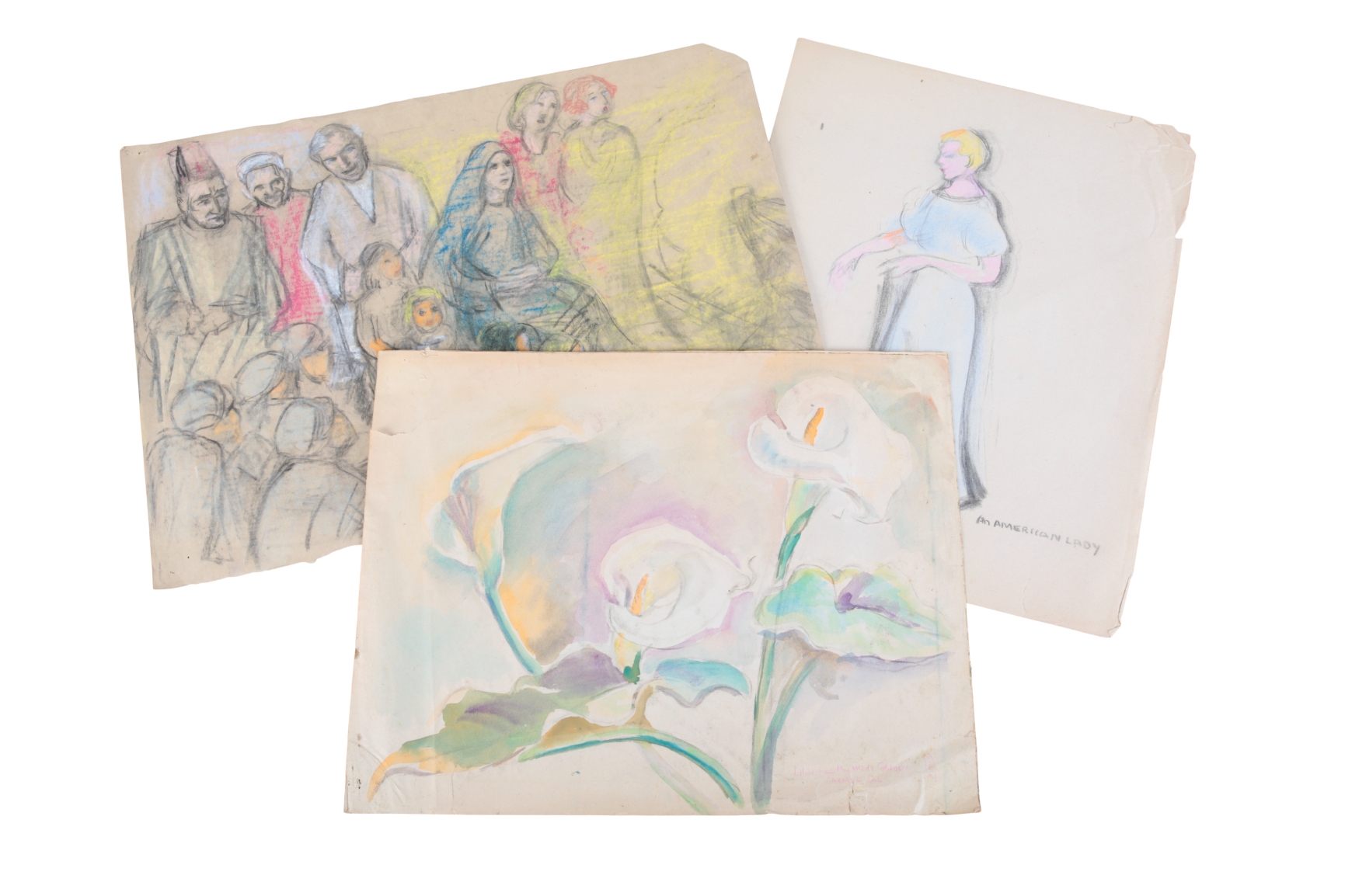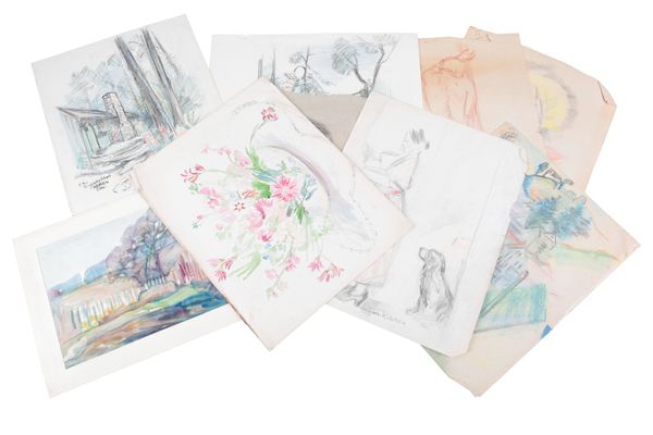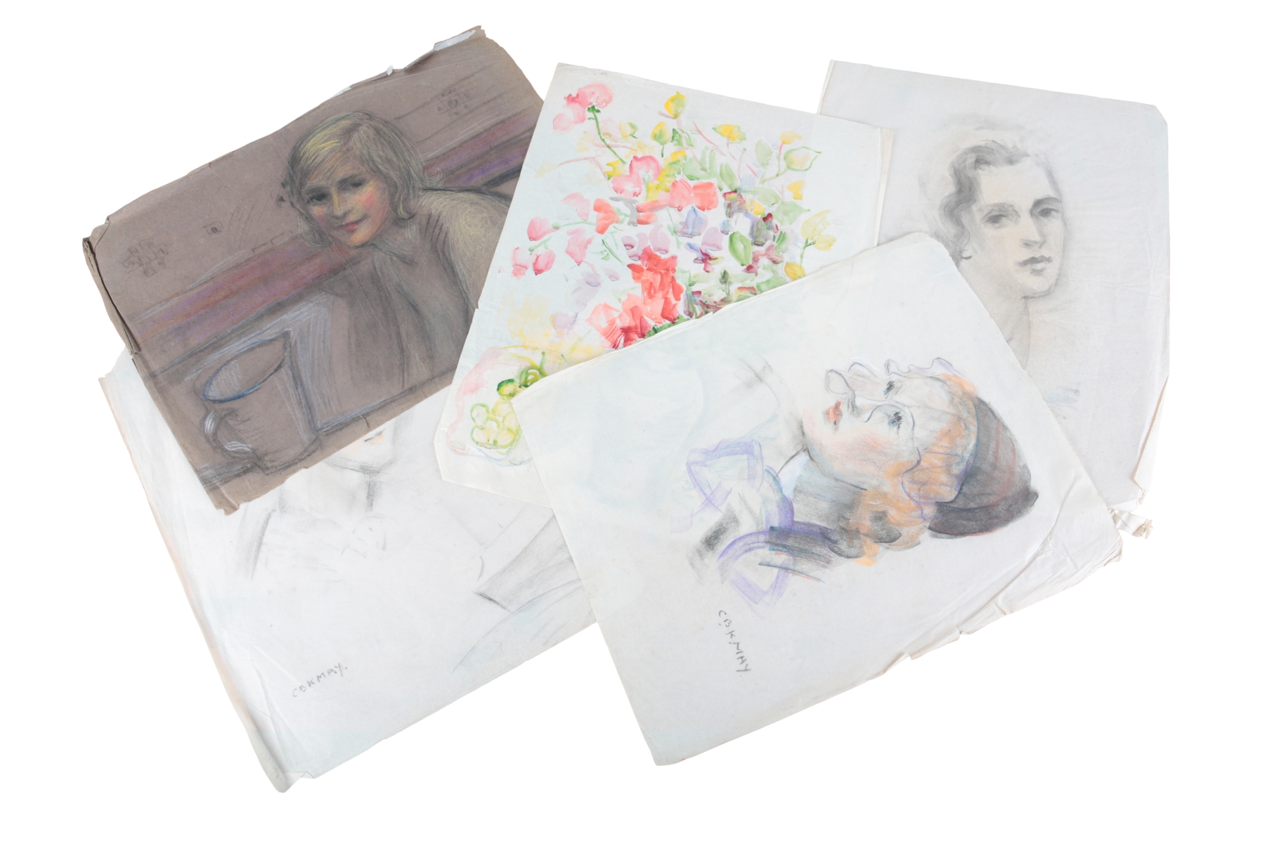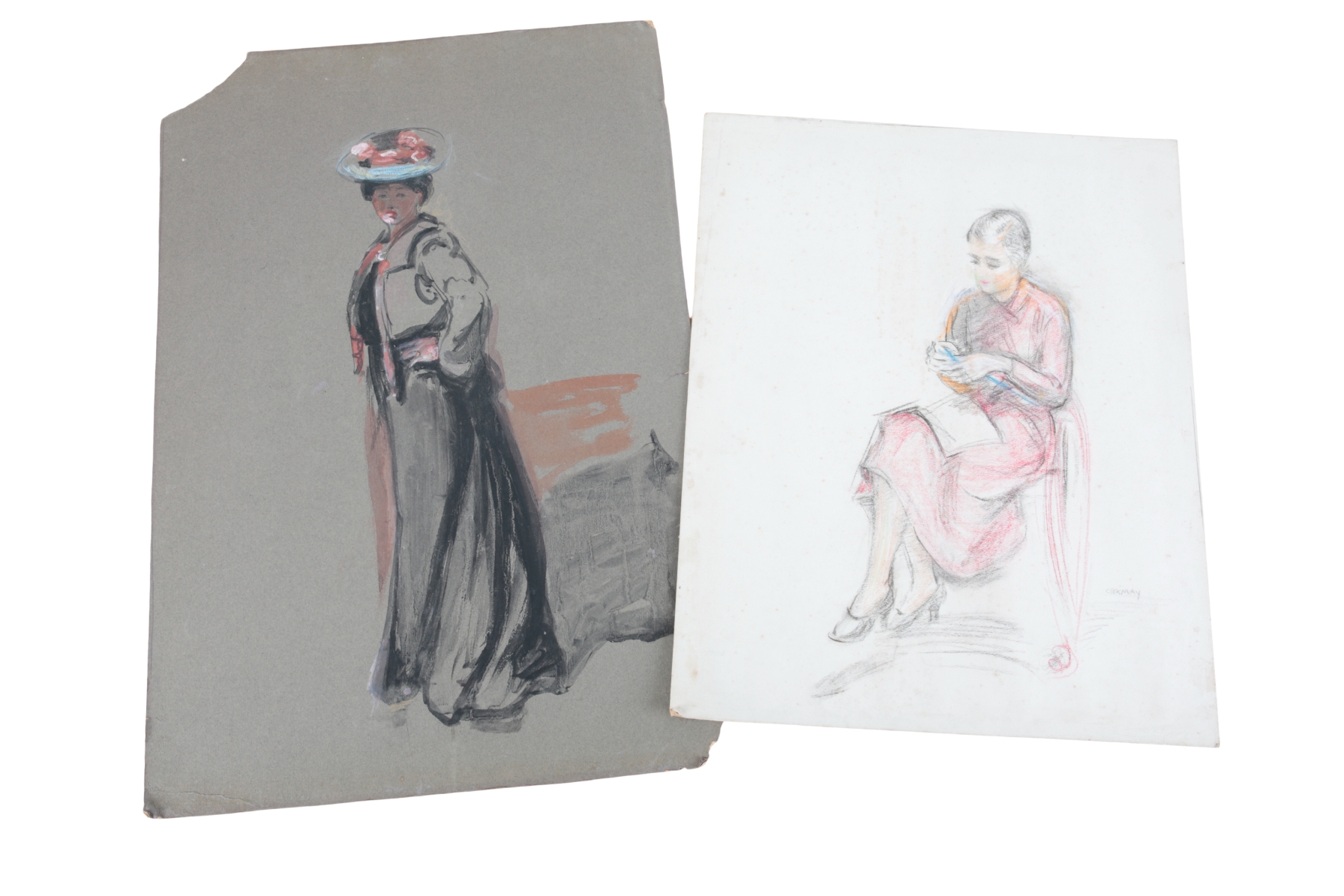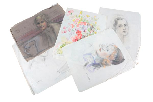 comprising portraits, costume studies, figure studies, predominantly pastel and watercolour, typically 39cm x 52cm (1 folder)