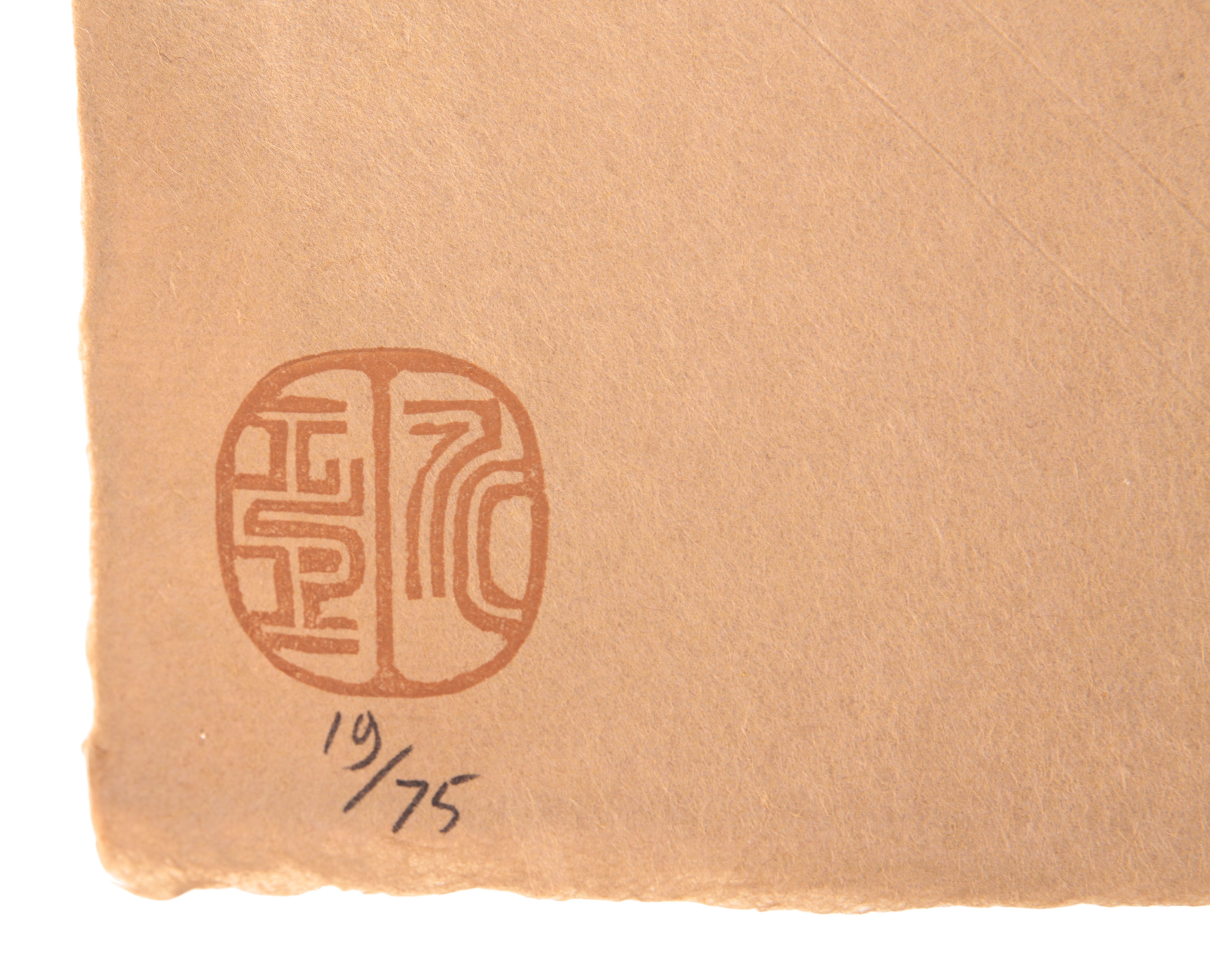 signed in pencil to margin, ed. 10/75, woodcut, 64cm x 95cm; together with a second woodcut by the same hand entitled 'Aurigo', both rolled (2)