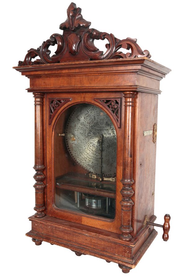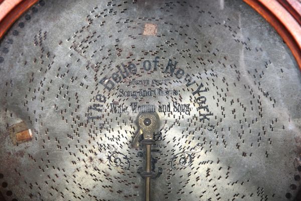The polyphon plays as recorded in the video, however would benefit from a service. It is operated by a winding mechanism to the side.
