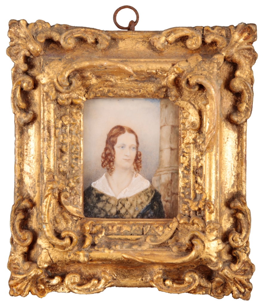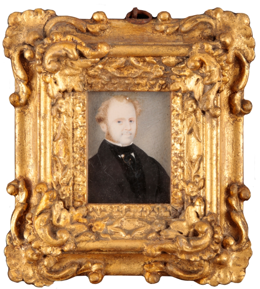 bust-length, watercolour on ivory, 6cm x 5cm each (2)