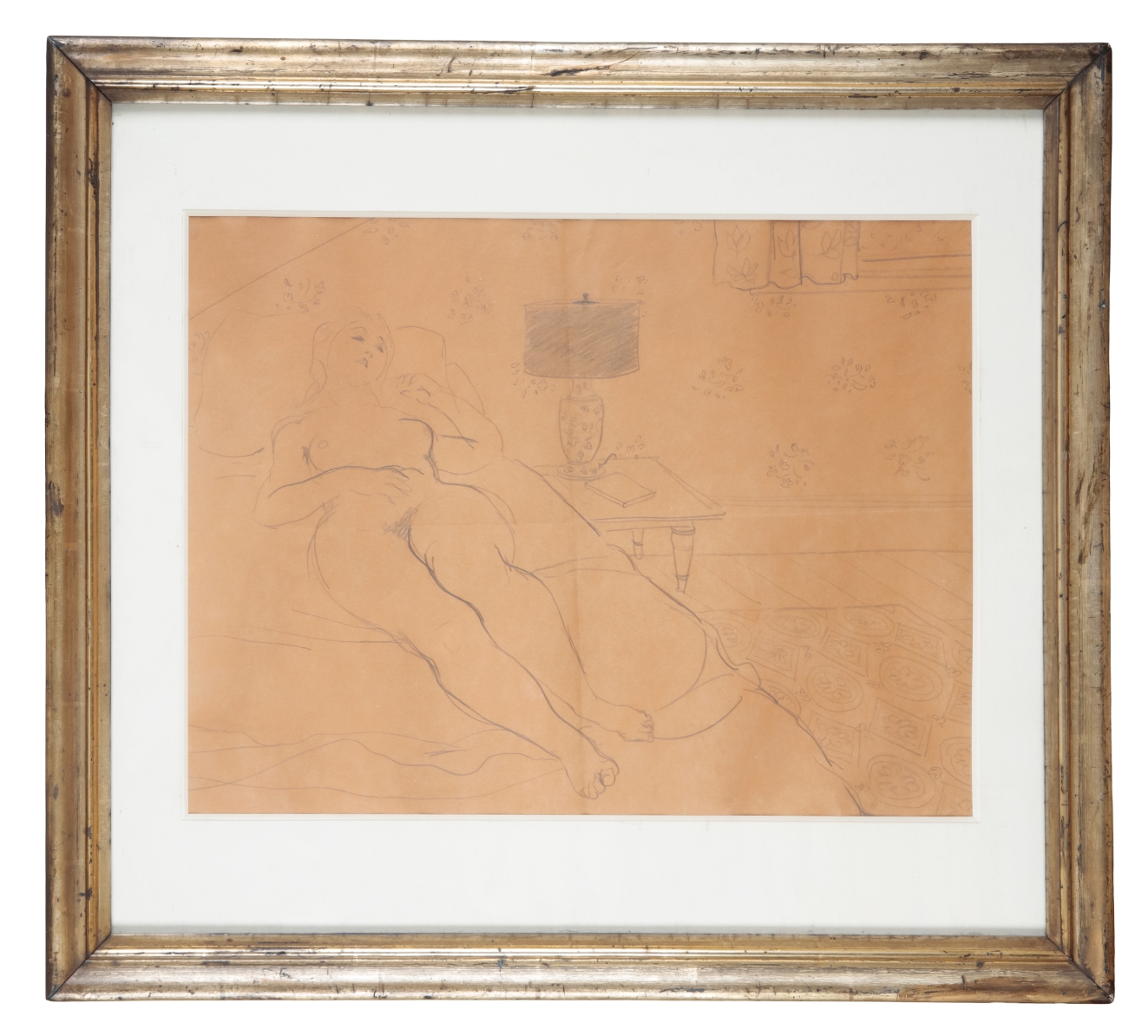 depicted in a bedroom, pencil, 34cm x 45cm