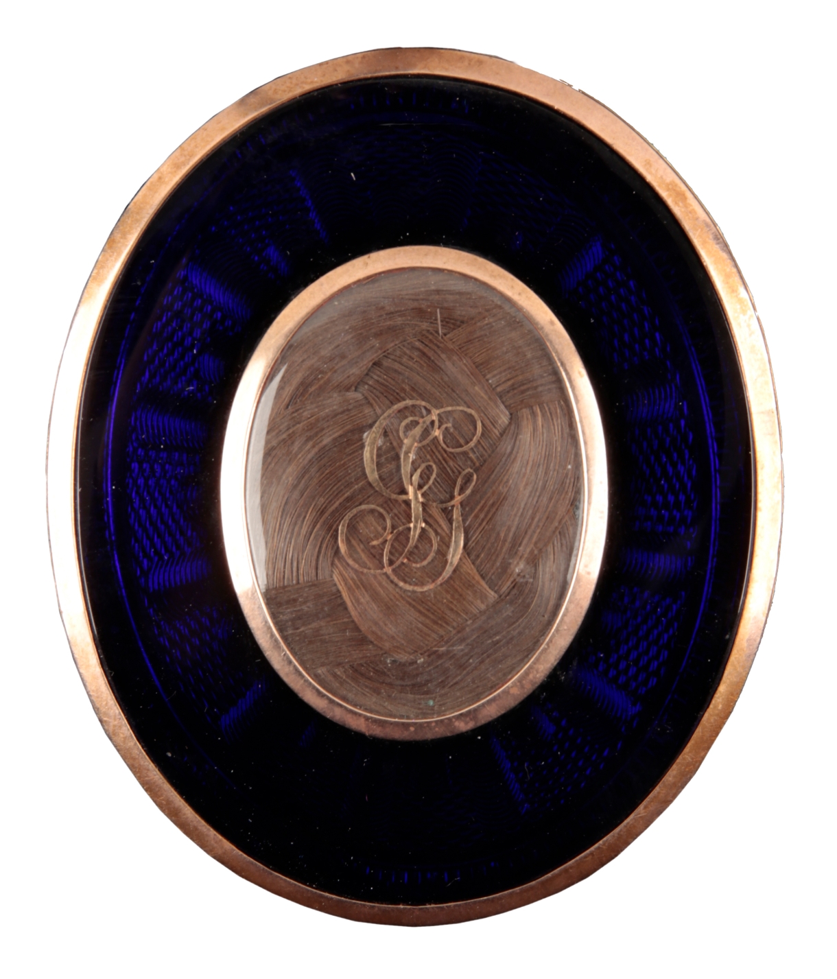 bust-length, in uniform, watercolour on ivory, 6.5cm x 5.5cm, a woven hair locket verso