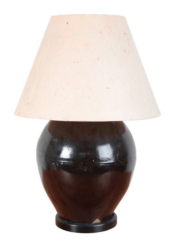 A PAIR OF LARGE BLACK GLAZED CERAMIC LAMPS