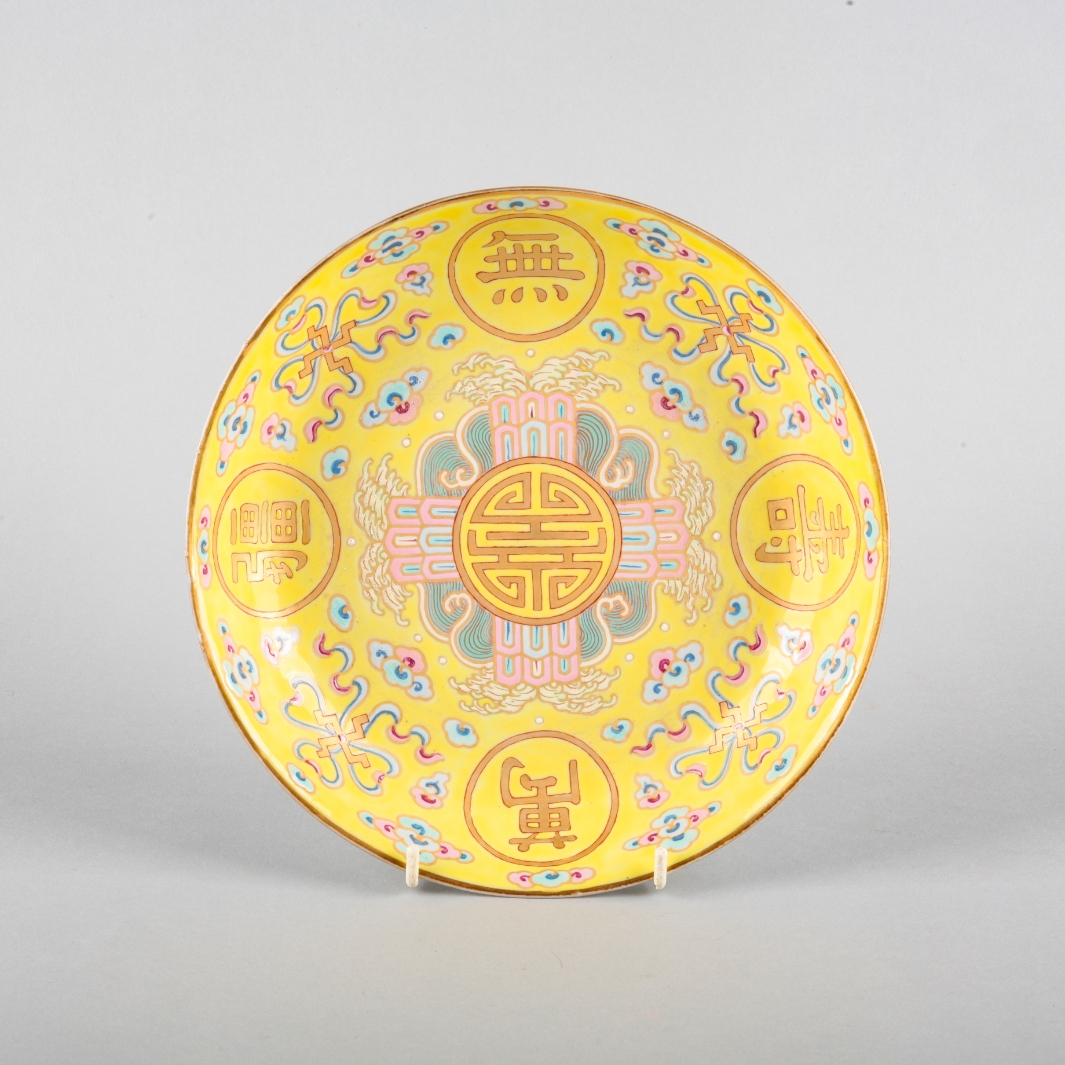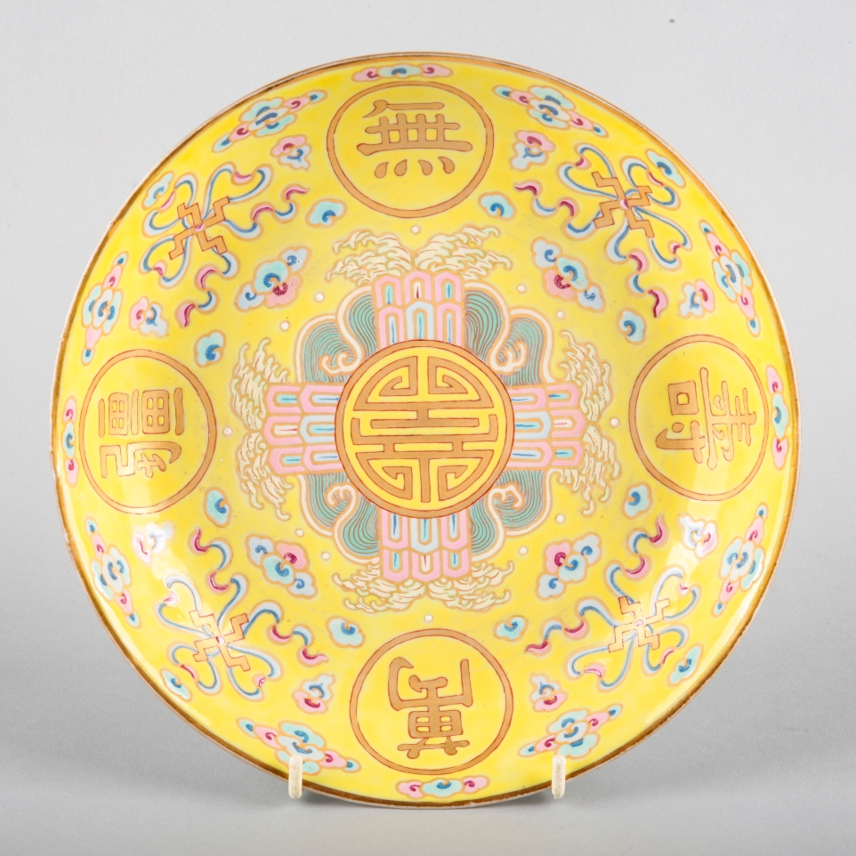 Plates of this type are typically produced in celebration of important birthdays, the characters translating to 'May you enjoy infinite longevity'.