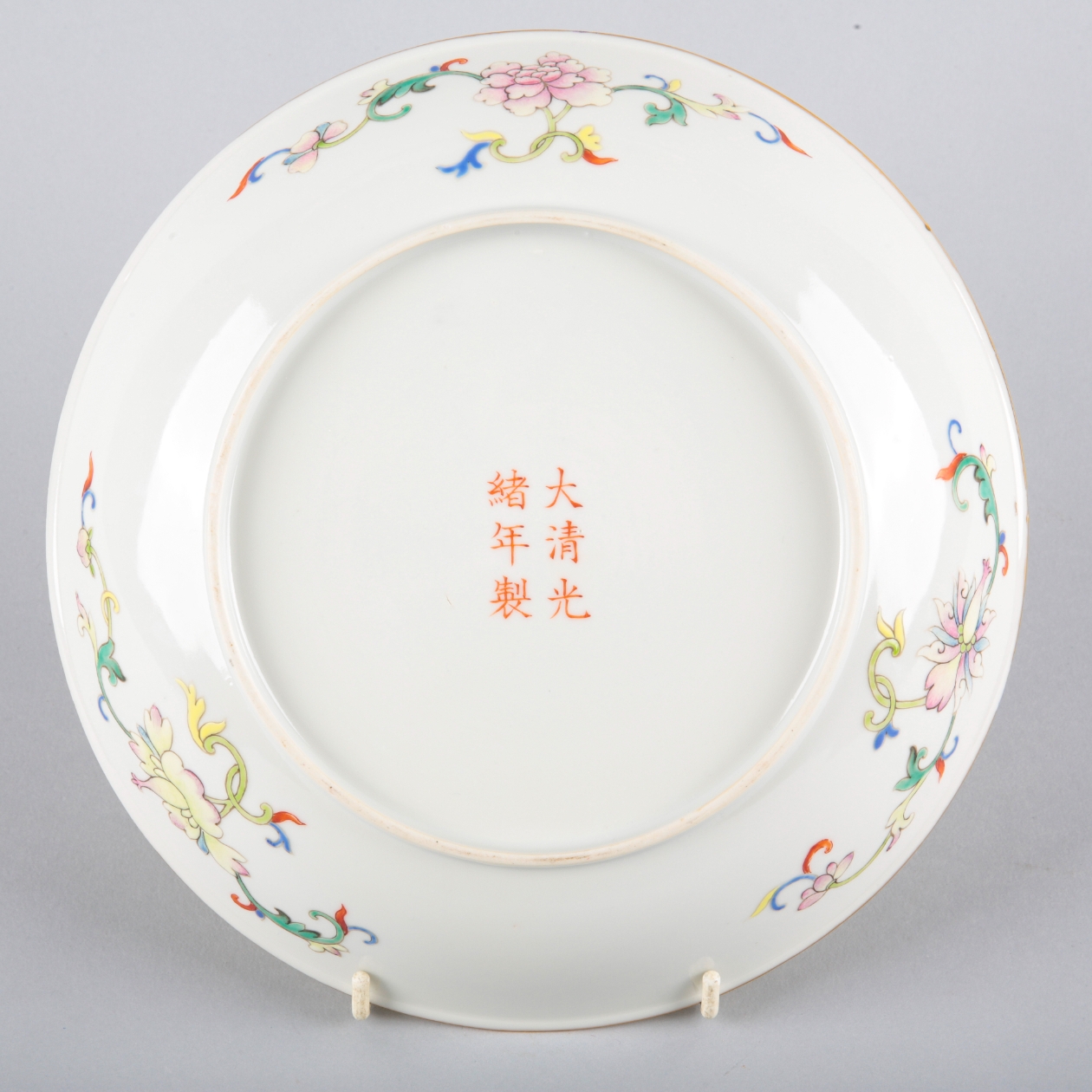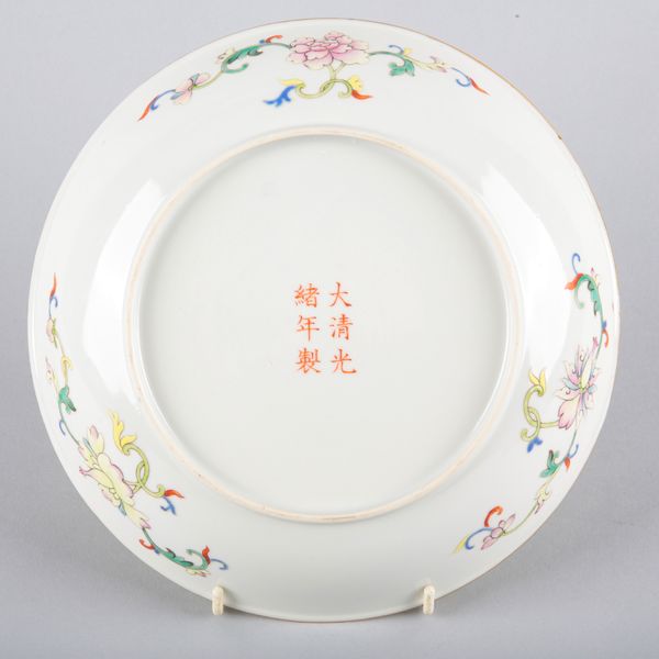 A CHINESE PORCELAIN FAMILLE ROSE 'WAN SHOU WU JIANG' PLATE