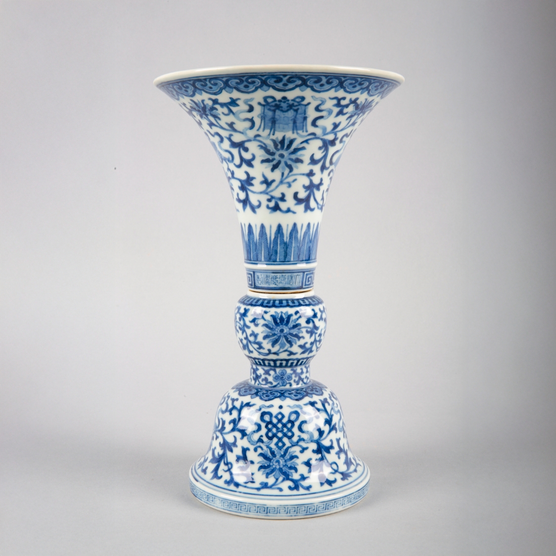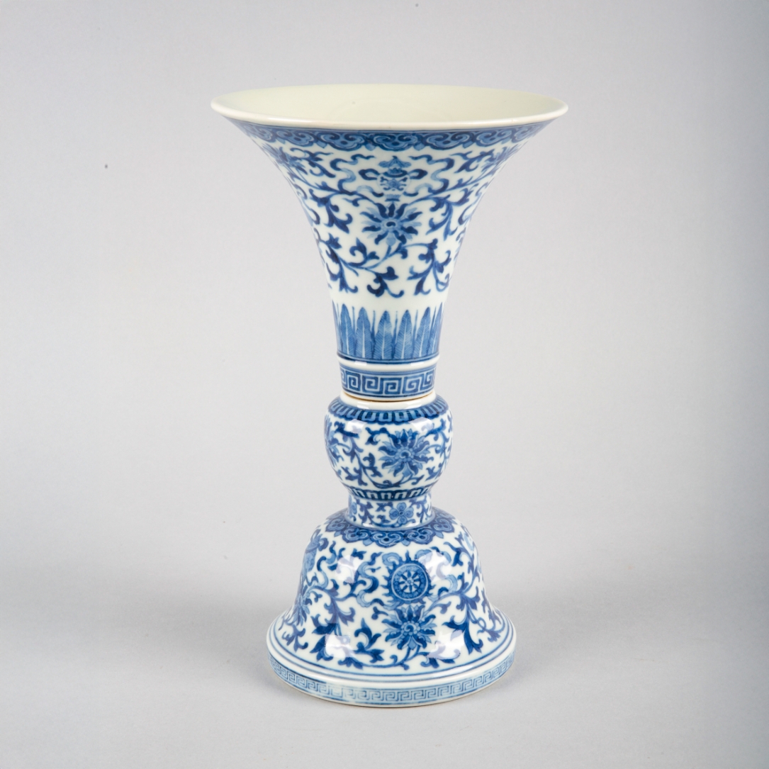A CHINESE PORCELAIN BLUE AND WHITE GU VASE
