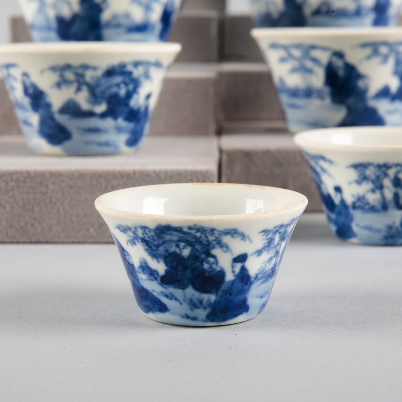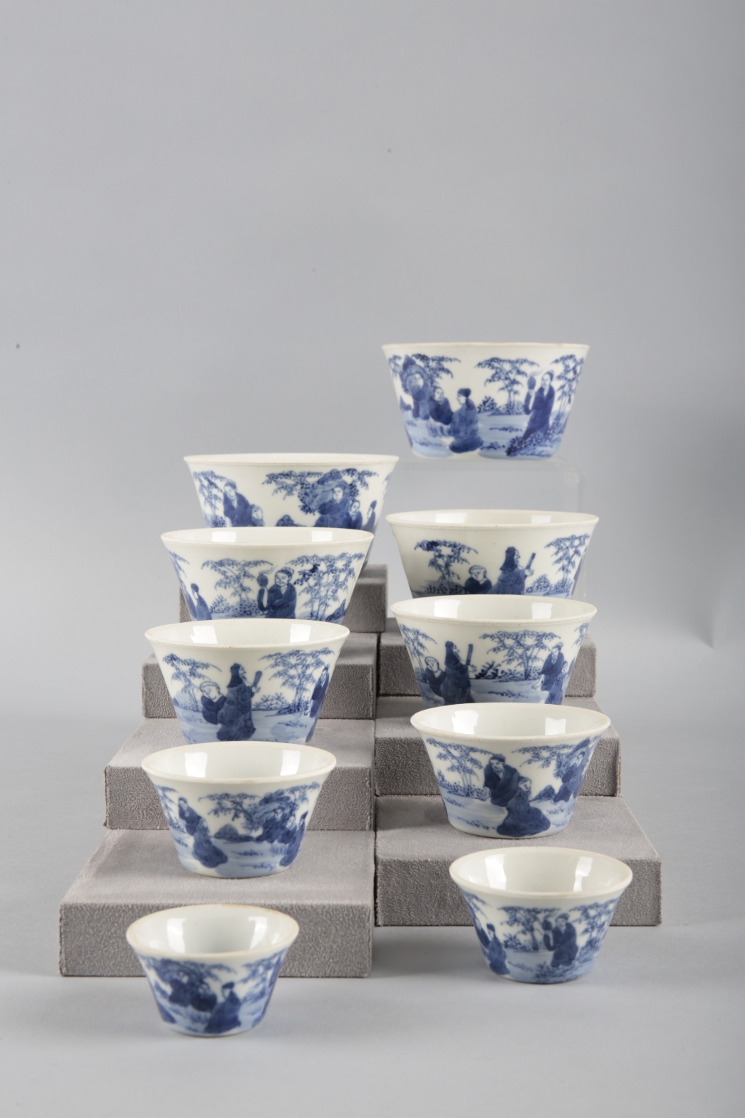 The set are largely in fair condition, with minor surface wear and scratching to report, consistent with age and use. The rims are all rough, exhibiting glaze thinning and some fritting. Small firing faults evident, including some flaking to the smallest bowl.