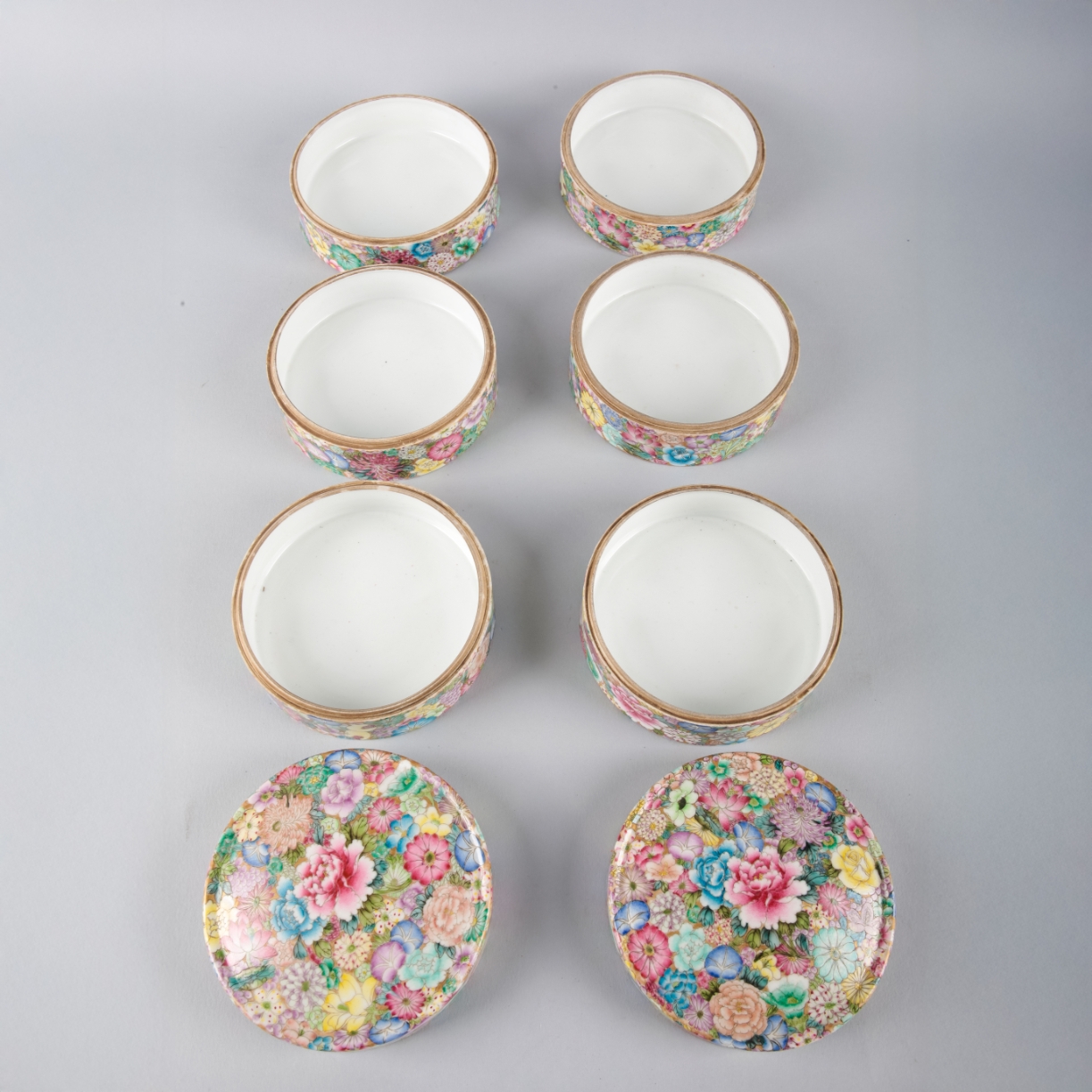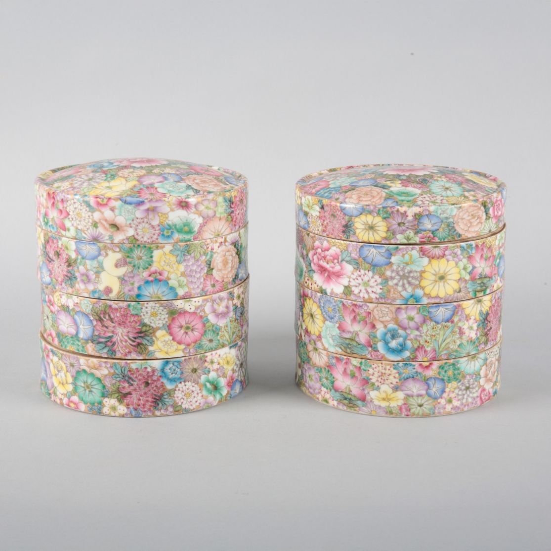A PAIR OF CHINESE PORCLEAIN MILLEFLEUR STACKING BOXES