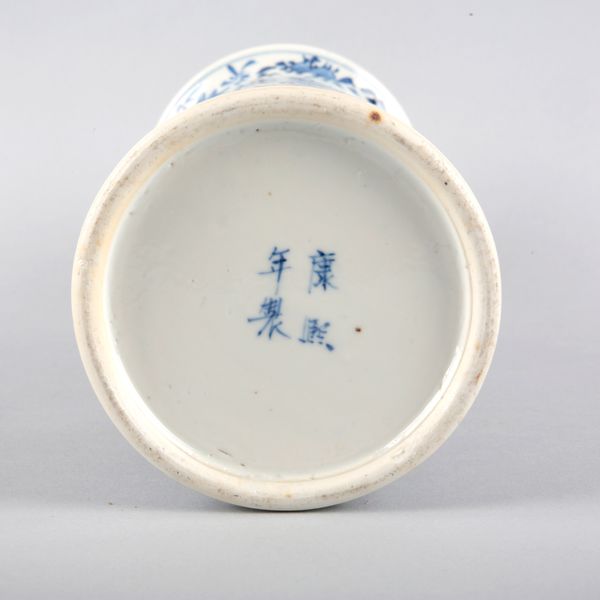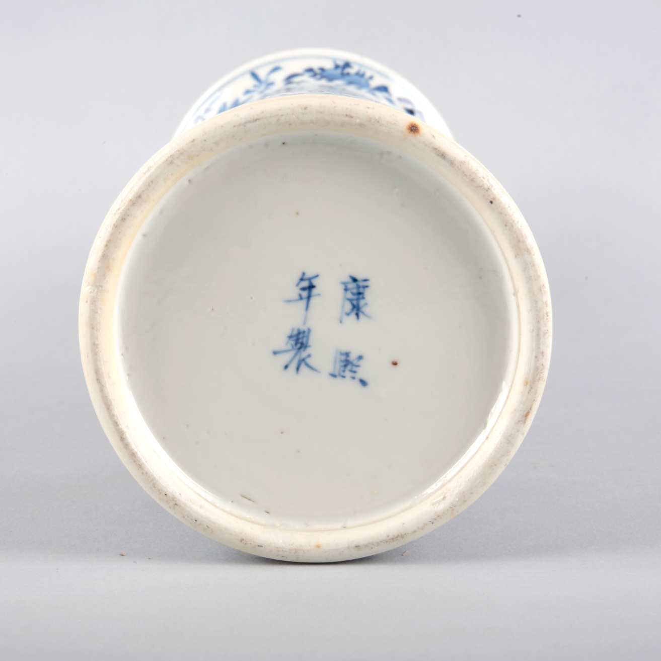A CHINESE PORCELAIN BLUE AND WHITE SLEEVE VASE
