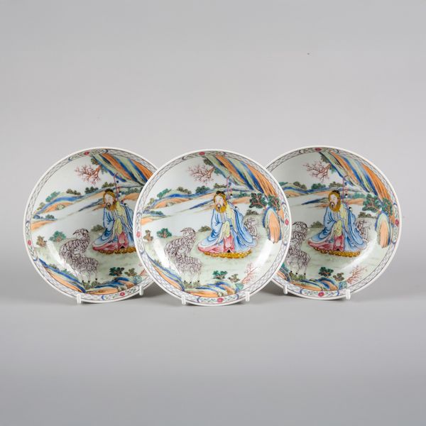 A SET OF THREE CHINESE PORCELAIN FAMILLE ROSE SAUCERS