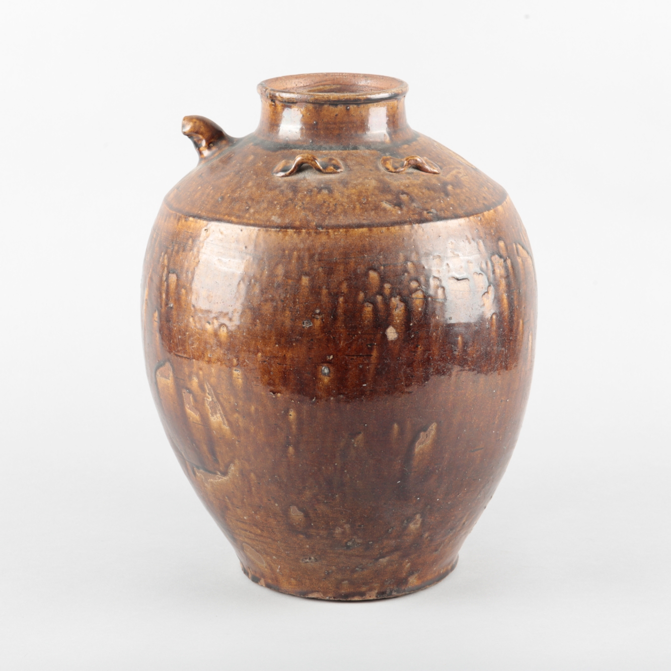 Ming dynasty, with four small loop handles to the shoulder and a spout, 42cm high Provenance: The Peter Newall Collection.