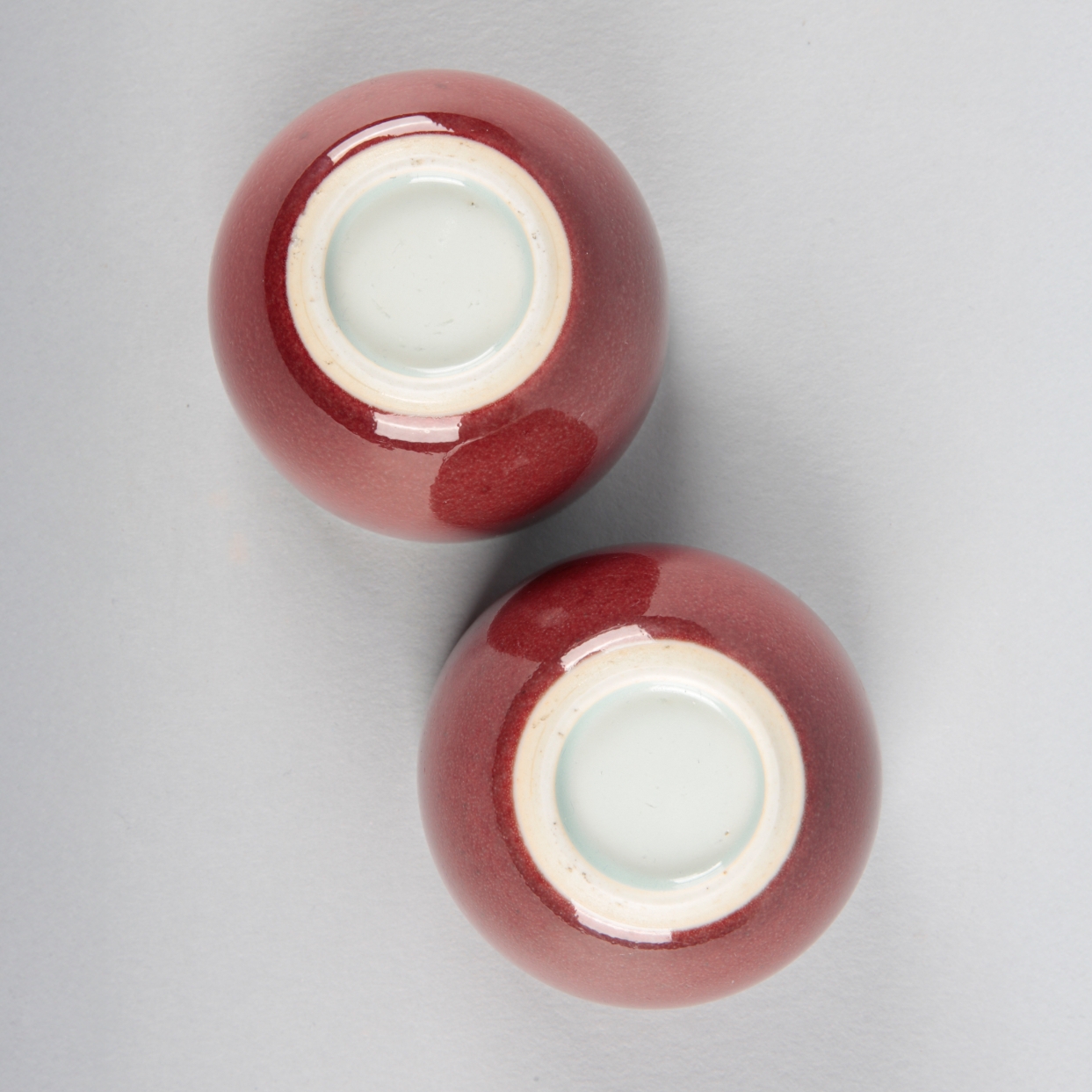 Both cups appears to be in good overall condition. There is glaze thinning and resulting fritting to each rim. Small firing fualts/glaze faults. Light surface wear and scratching, consistent with age and use.