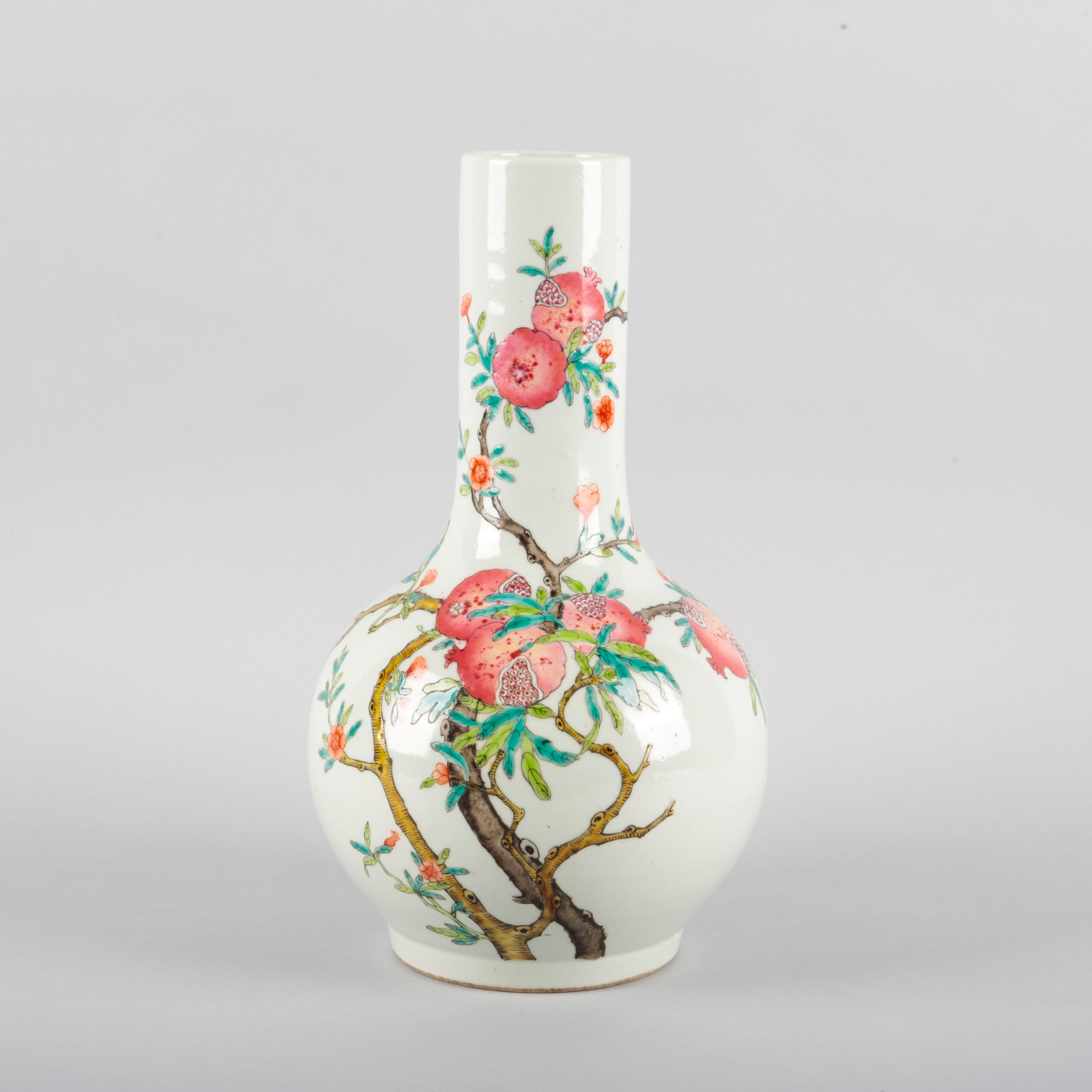 19trh/20th century, the bulbous body and slender neck decorated with a blossoming pomegranate tree, 34cm high