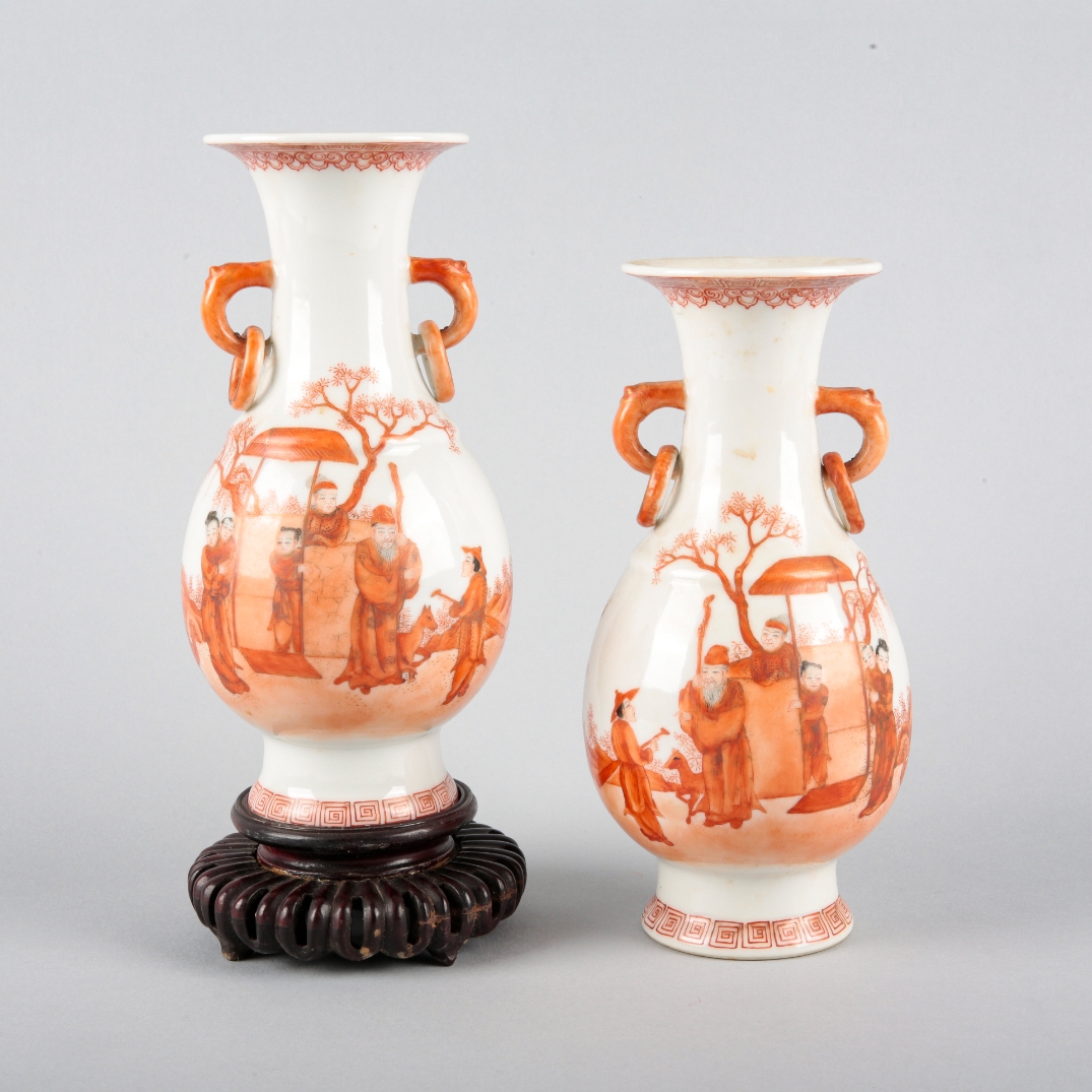 A PAIR OF CHINESE PORCELAIN IRON RED GLAZED VASES