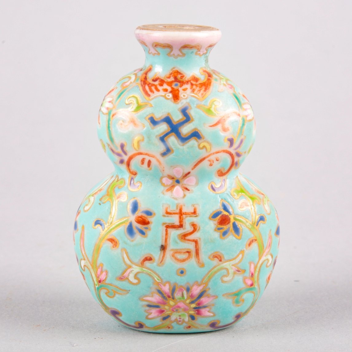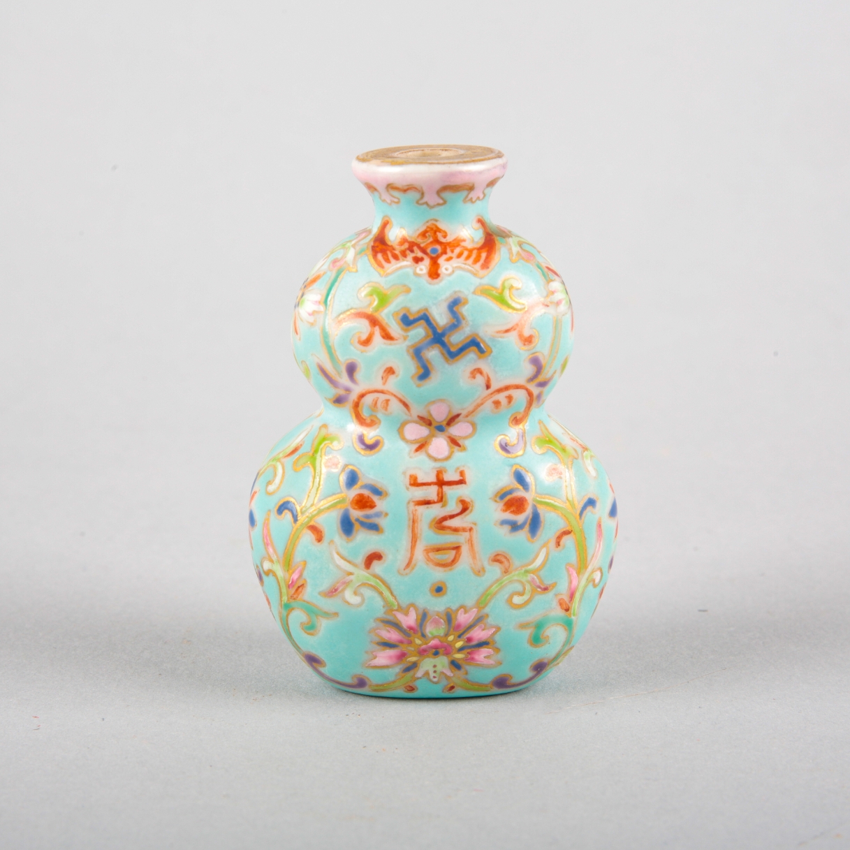 A CHINESE FAMILLE ROSE DOUBLE GOURD SHAPED SNUFF BOTTLE