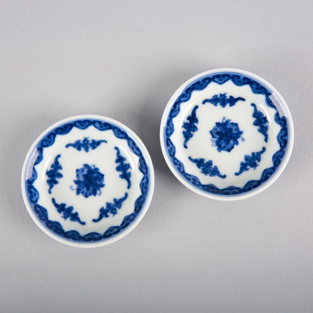 These saucers appear in good condition, with minor wear and one small chip to one saucer's foot rim. Additional photos available on request.