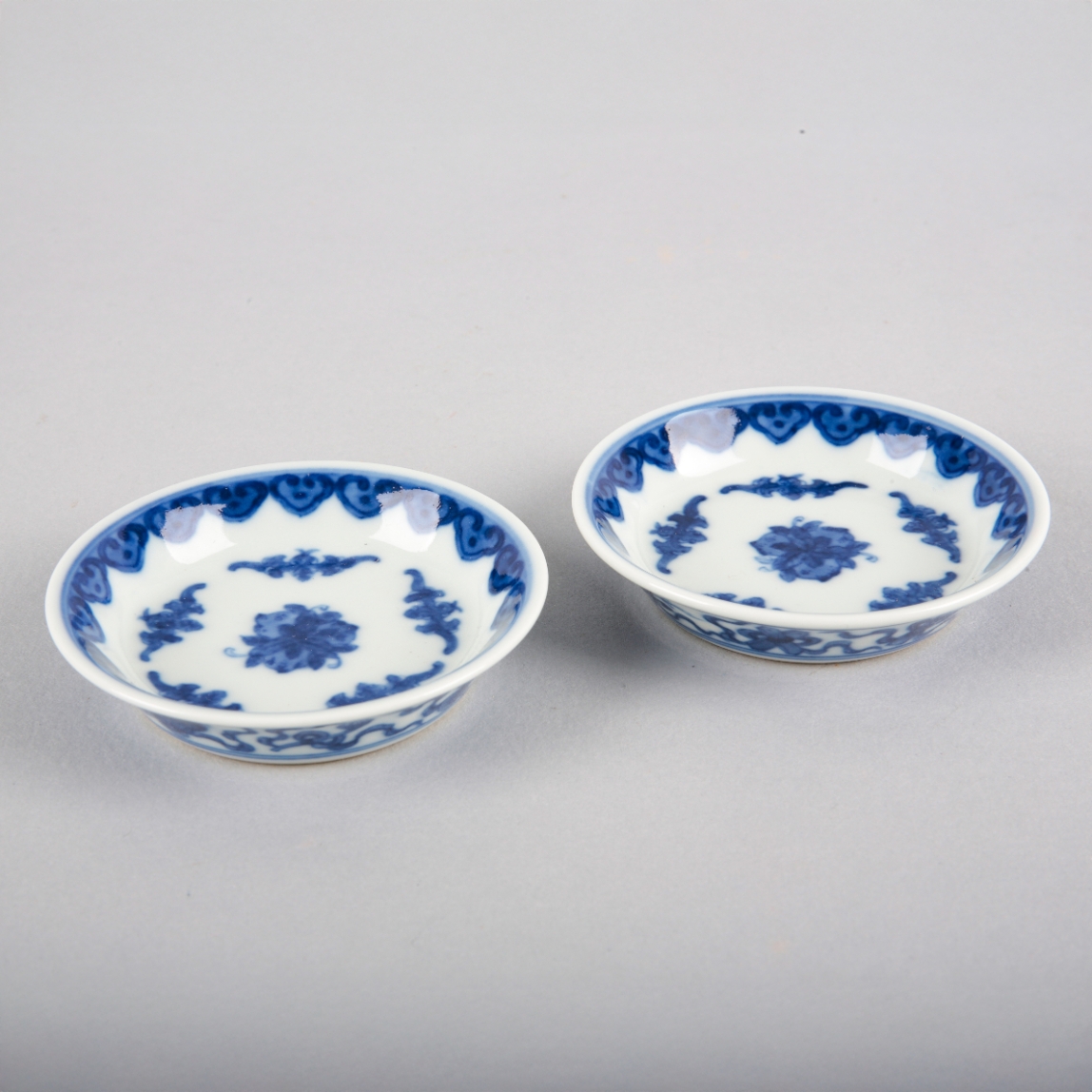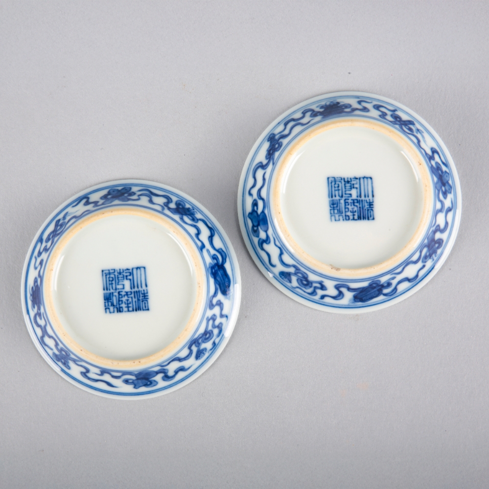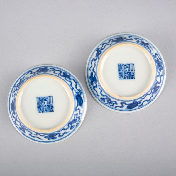 A PAIR OF CHINESE PORCELAIN BLUE AND WHITE SAUCERS