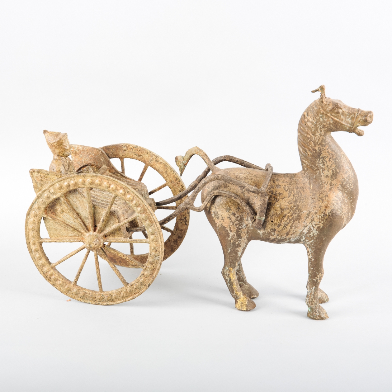 A CHINESE BRONZE HORSE AND CARRIAGE GROUP