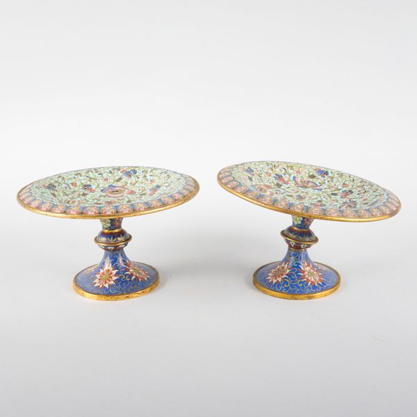 A PAIR OF CHINESE CLOISONNE TAZZAS
