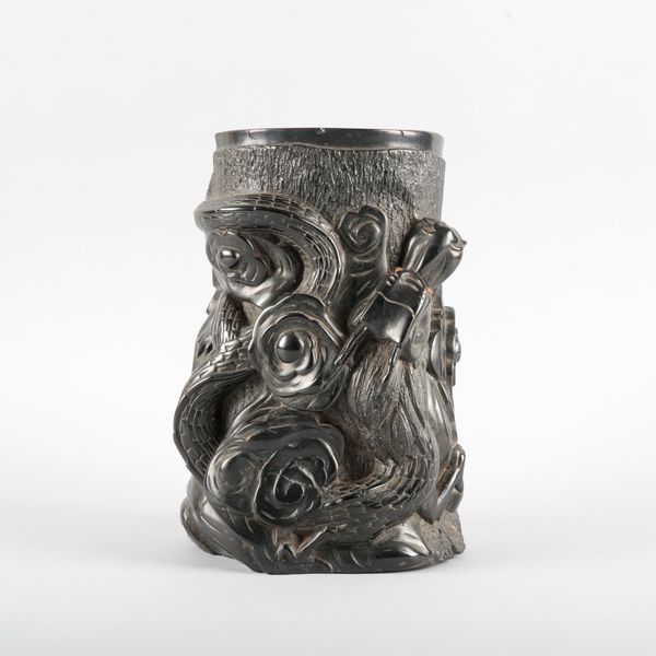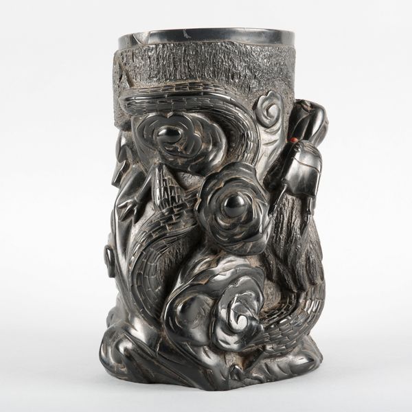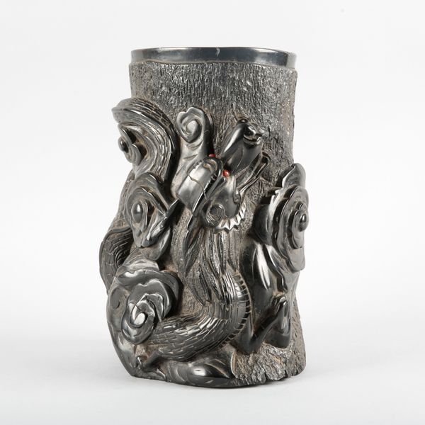 20th century, of naturalistic tree trunk form with bark effect, moulded in relief with a dragon wrythen about the front, 30cm high