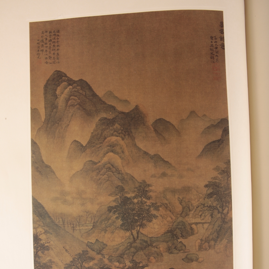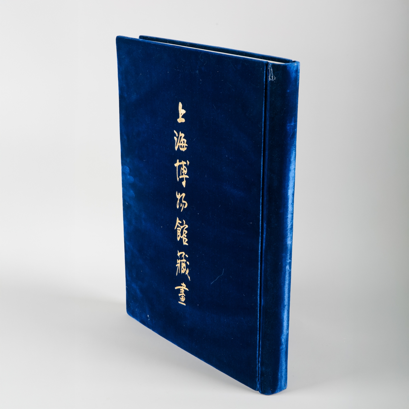 Shanghai Bowuguan Cang Hua, containing numerous tipped-in coloured plates, with blue velvet covers and gilded lettering, 54cm high, in a brocade covered box