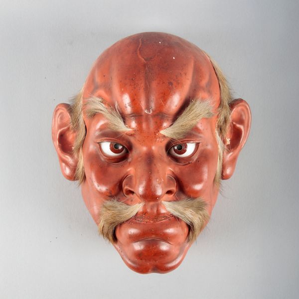 Meiji period, carved wood and gesso inset with hair and glass eyes, 21cm high x 19cm wide Provenance: The Peter Newall Collection.