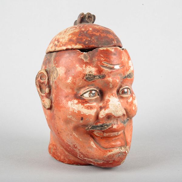 Meiji period, modelled as a red painted smiling head, 18cm high