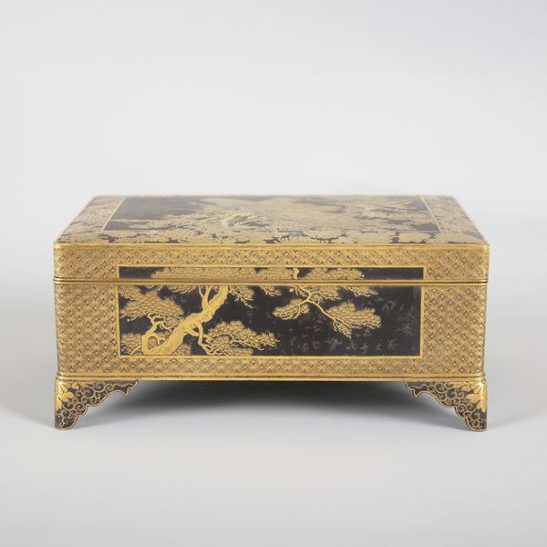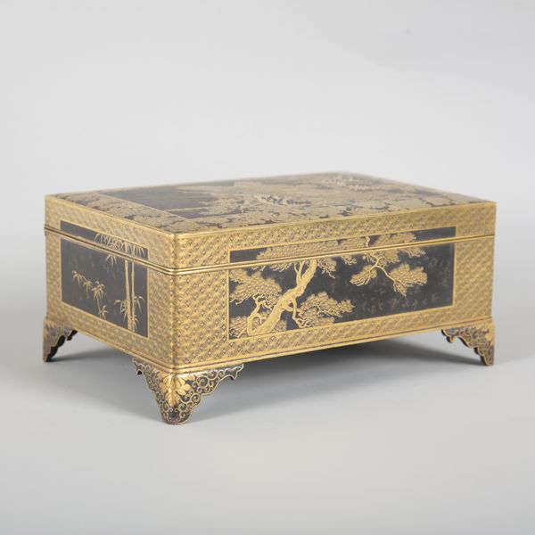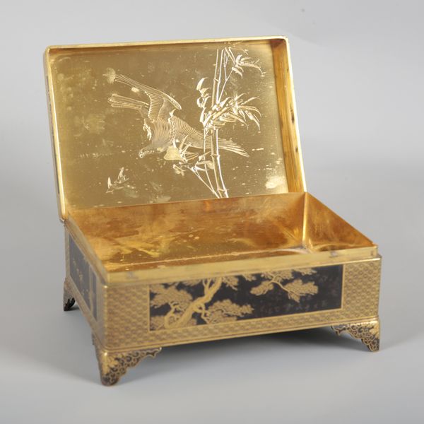The box is in largely good condition, without major damages or restoration. The cover is slightly ill fitting/tight. There is some wear and tarnishing apparent, notably some small areas of oxidisation around the feet and to the panels. Wear evident around the inner rim where the cover joins. Light surface marks consistent with age and use.