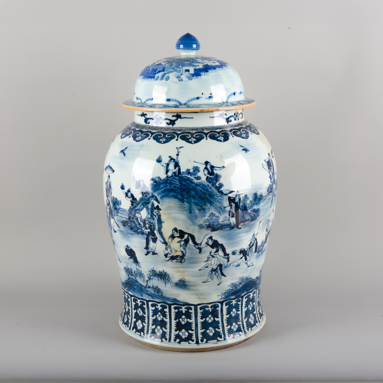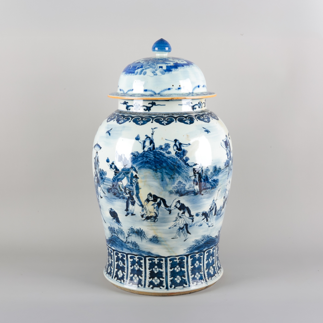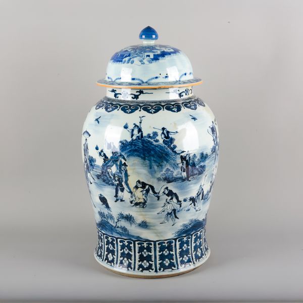 A LARGE CHINESE PORCELAIN BLUE AND WHITE BALUSTER VASE AND COVER